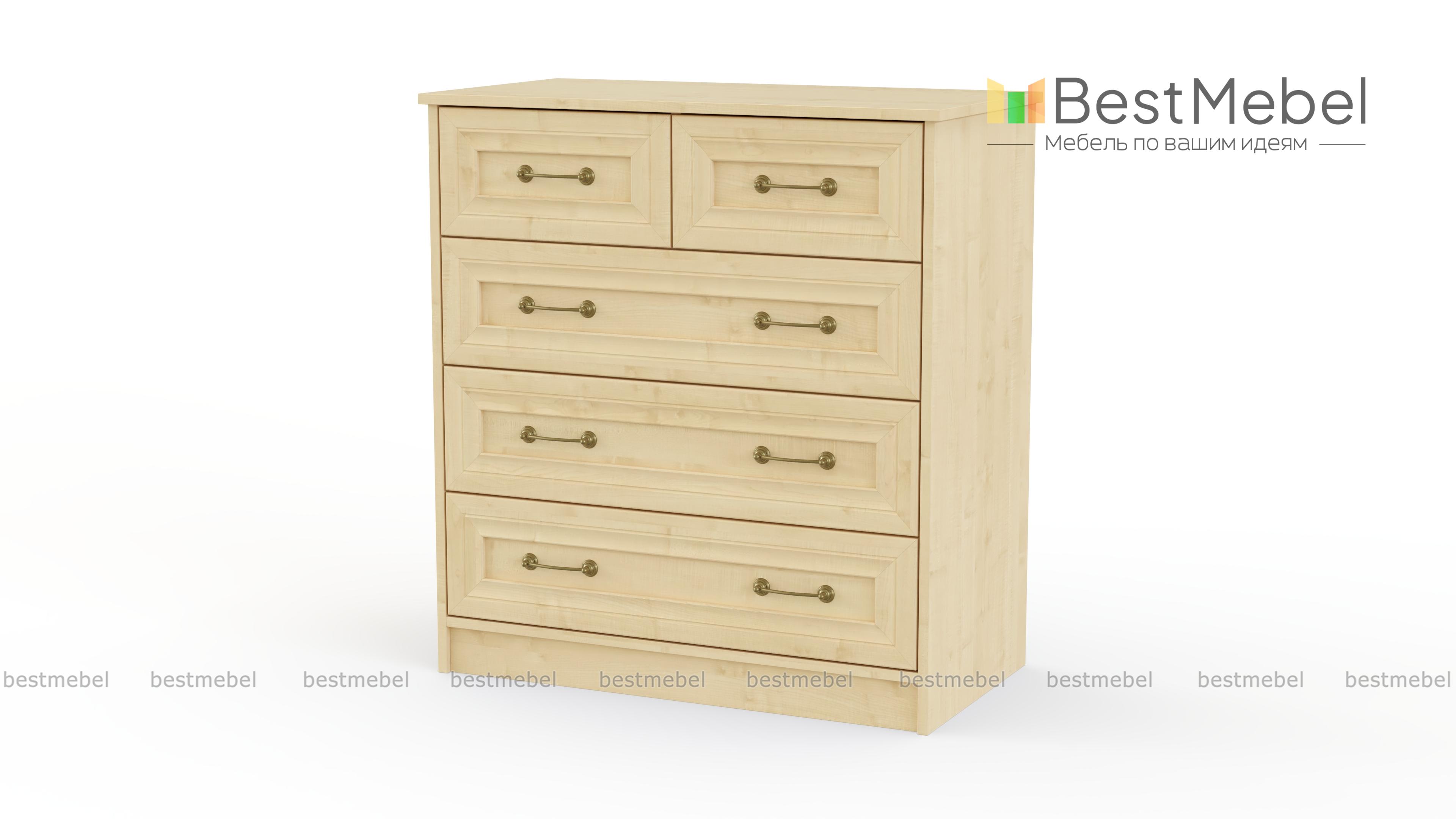 Красивая модель классического комода, изготовленного из современных материалов. Комод Ричард 0, 42 имеет три больших выдвижных ящика для постельного белья, домашних и личных вещей и два маленьких ящика для мелких предметов туалета. Особо привлекательно выглядят оригинальные стильные ручки, а поверхность комода можно декорировать различными предметами или использовать в качестве подставки под аппаратуру. Купить данную модель можно для гостиной, спальни, прихожей.