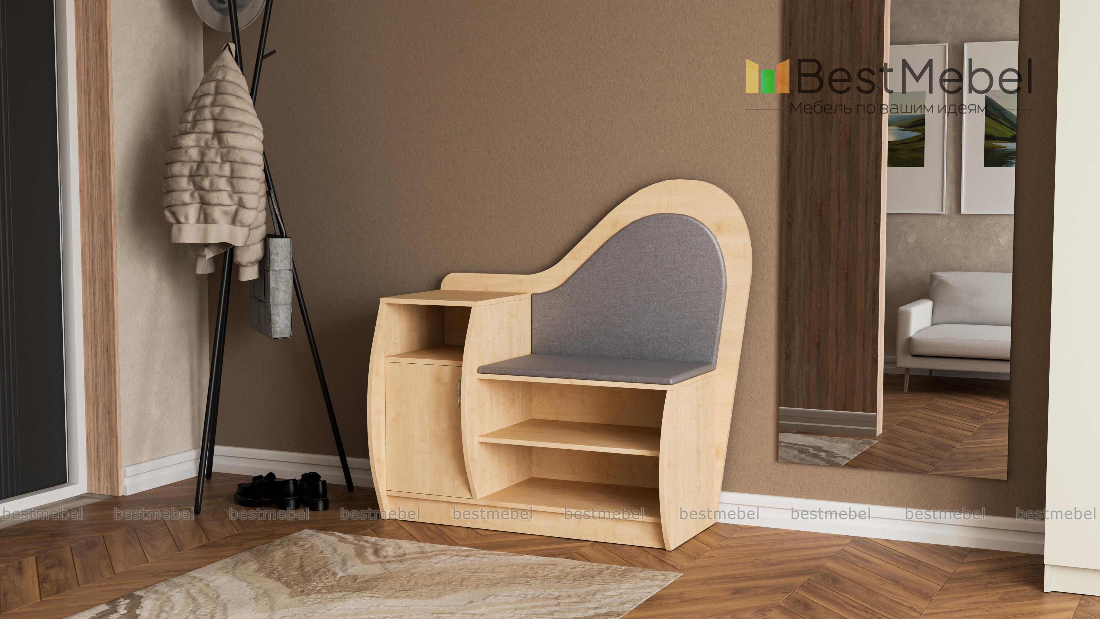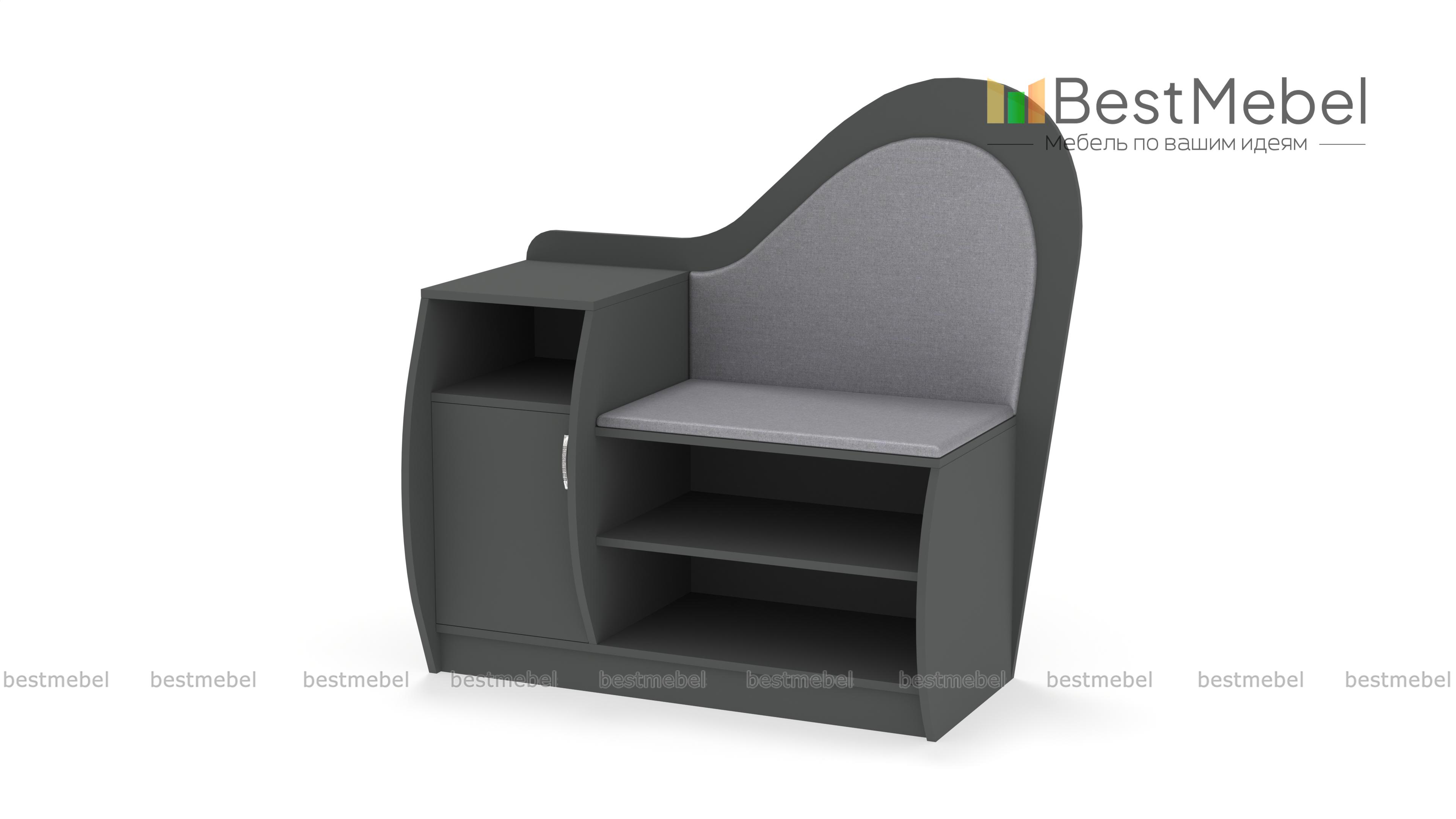 Обувница Литта 1 BMS сочетает практичность конструкции и оригинальный дизайн. Благодаря фигурно вырезанным элементам и скругленным боковинам модель займет одно из центральных мест в интерьере прихожей. Комбинированная обувница оборудована открытыми полками, тумбой с распашным отделением и нишей для аксессуаров и сиденьем с высокой спинкой в мягкой тканевой обивке. Купить обувницу Литта 1 BMS и эффективно использовать пространство вам поможет наш интернет-магазин.