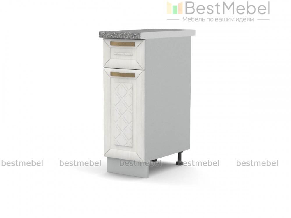 Шкаф нижний 1 дверь 1 ящик Агава BMS дополнит нижний ряд модулей кухонного гарнитура в классическом стиле. Компактная тумба легко впишется в интерьер малогабаритных помещений и будет незаменима для хранения как столовых приборов и прочих мелочей, так и более габаритных предметов. Под столешницей располагается выдвижной ящик, дополненный распашным отделением с полкой. Рамочные фасады украшает уютная фрезеровка ромбами. Купить шкаф нижний 1 дверь 1 ящик Агава BMS, подобрав цветовое решение, вы сможете недорого в нашем интернет-магазине.