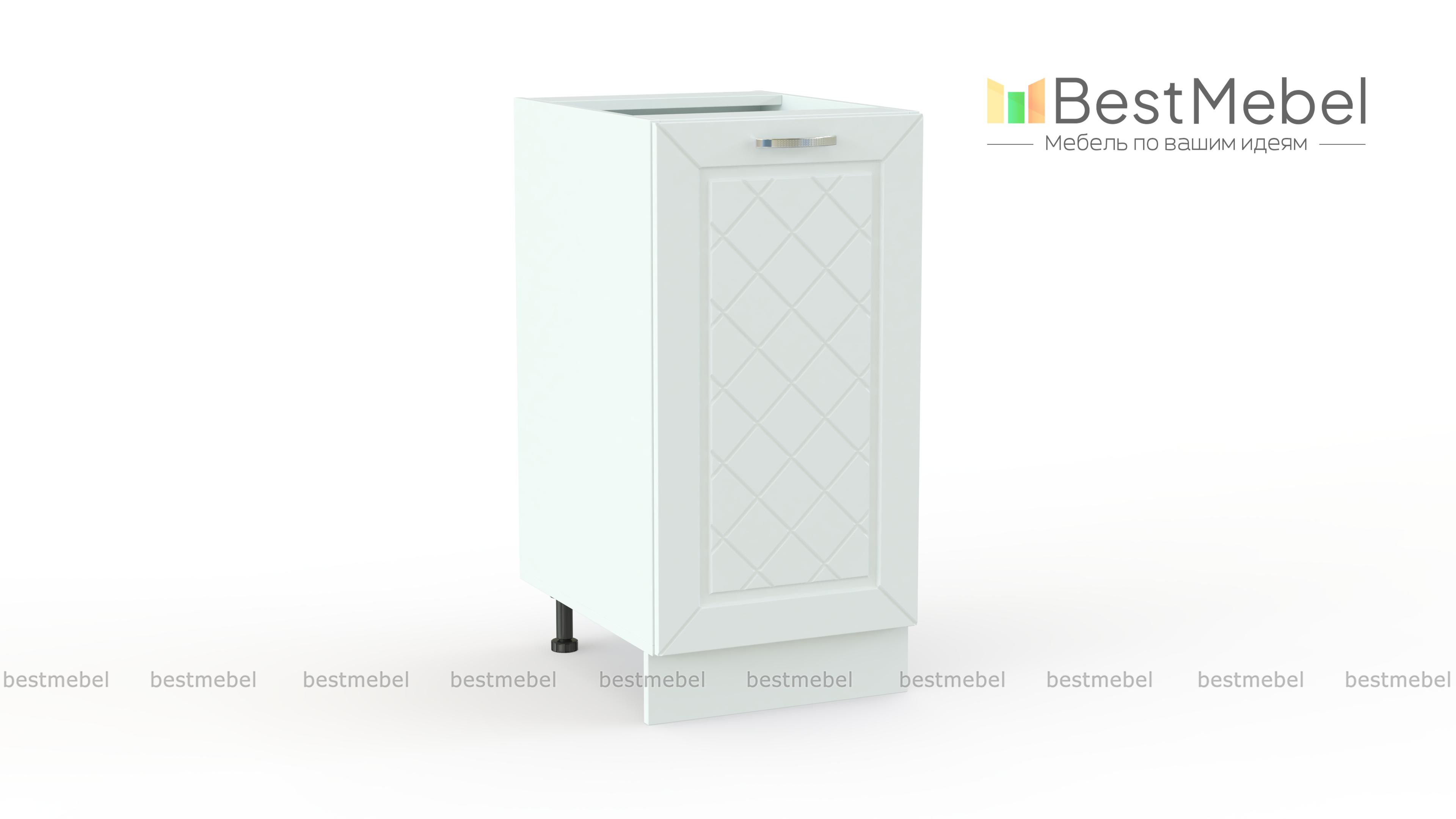 Шкаф нижний 1 дверь Агава BMS отличается компактными размерами, надежной конструкцией и дополнит нижний ряд модулей кухонного гарнитура. Модель оборудована распашным отделением с полкой и удобна для хранения посуды, продуктов и разнообразных мелочей. Рамочный фасад светлых тонов украшает традиционная фрезеровка ромбами, устойчивость обеспечивают регулируемые опоры, закрытые цоколем в тон корпуса. Купить шкаф нижний 1 дверь Агава BMS по доступной цене приглашаем в наш интернет-магазин.