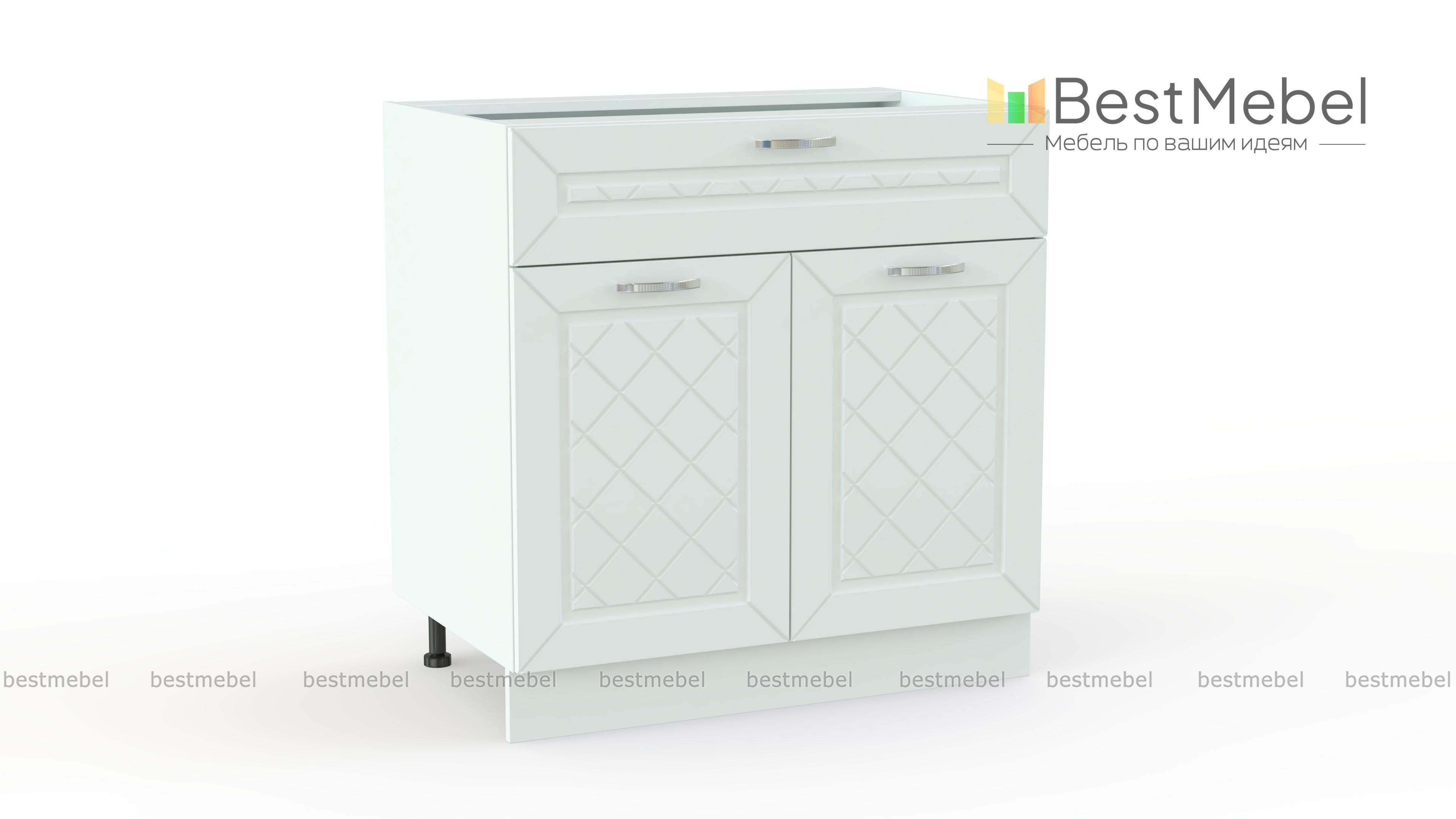 Шкаф нижний 2 двери 1 ящик Агава BMS – комбинированная модель, незаменимая в практичном кухонном гарнитуре. Тумба с широким выдвижным ящиком и распашным отделением с полкой удобно разместит как столовые приборы и прочие мелкие вещи, так и габаритные предметы. Украшенные ромбовидной фрезеровкой, фасады устойчивы к влаге и повышенным температурам и надолго сохранят эстетичный вид. Купить шкаф нижний 2 двери 1 ящик Агава BMS, подобрав оптимальное цветовое решение, приглашаем в наш интернет-магазин.