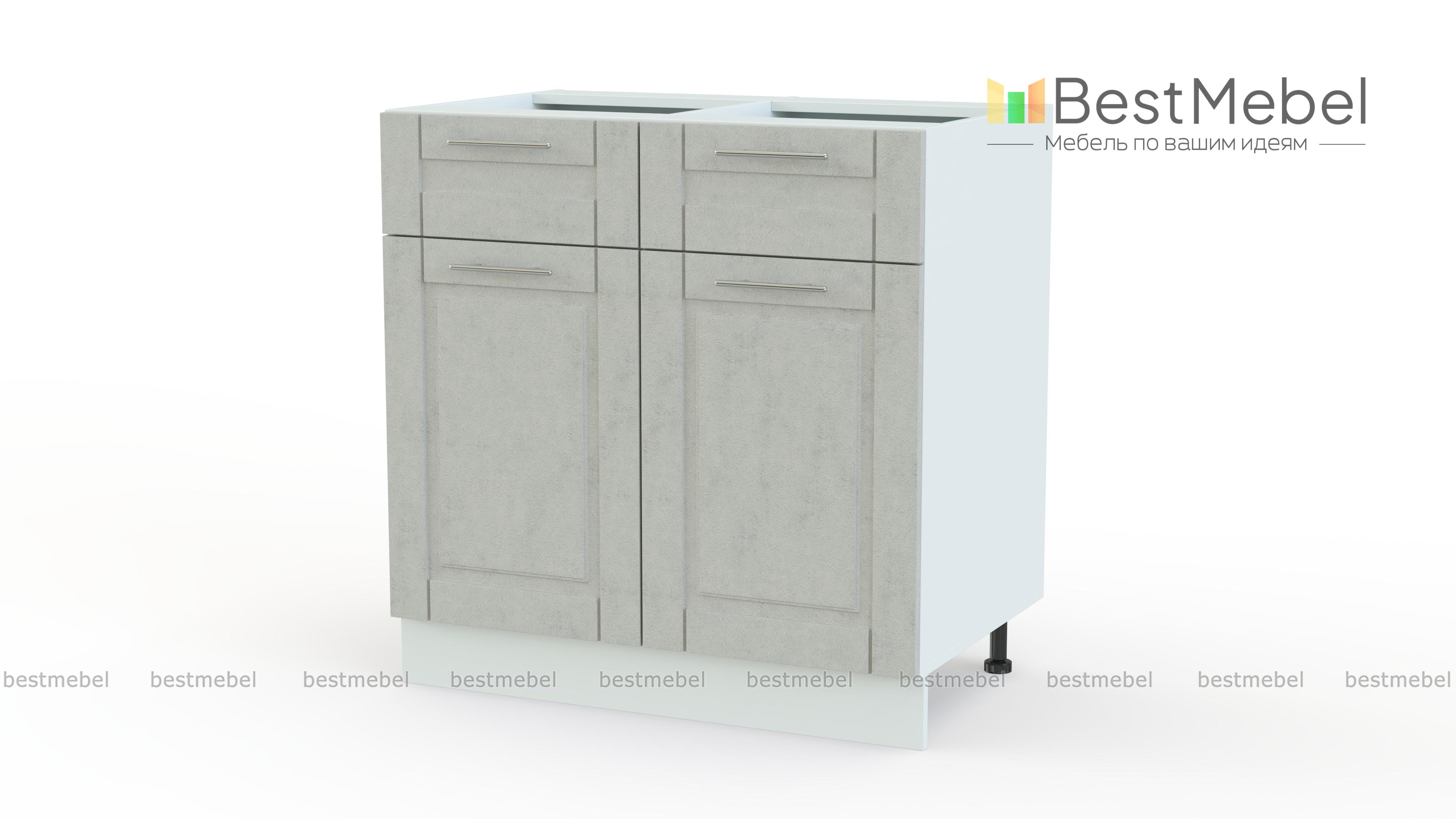 Шкаф нижний 2 двери 2 ящика Палермо BMS – это простота конструкции в сочетании с высокой функциональностью. Напольная тумба оборудована распашным отделением с полкой и двумя выдвижными ящиками под широкой столешницей, что позволит разместить мелкую бытовую технику, столовые приборы и габаритную посуду или продукты. Филенчатые фасады выполняются в стильных расцветках и гармонично впишутся в интерьеры стиля кантри или классические. Купить шкаф нижний 2 двери 2 ящика Палермо BMS вы сможете по доступной цене в нашем интернет-магазине.