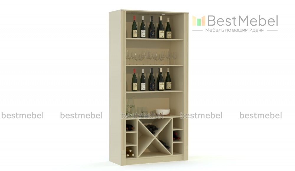 Шкаф Шелли С1 BMS органично впишется в современные интерьеры и разместит коллекцию вин. Открытая модель, выполненная в нейтральном бежевом цвете и декорированная фрезерованными накладками, идеально подходит для демонстрации бутылок с винами и обеспечивает удобный к ним доступ. В верхней части шкафа располагаются горизонтальные полки, а в нижней – решетка с прямыми и диагональными секциями. Купить шкаф Шелли С1 BMS с возможностью выбора цвета и размеров приглашаем к нам в интернет-магазин.