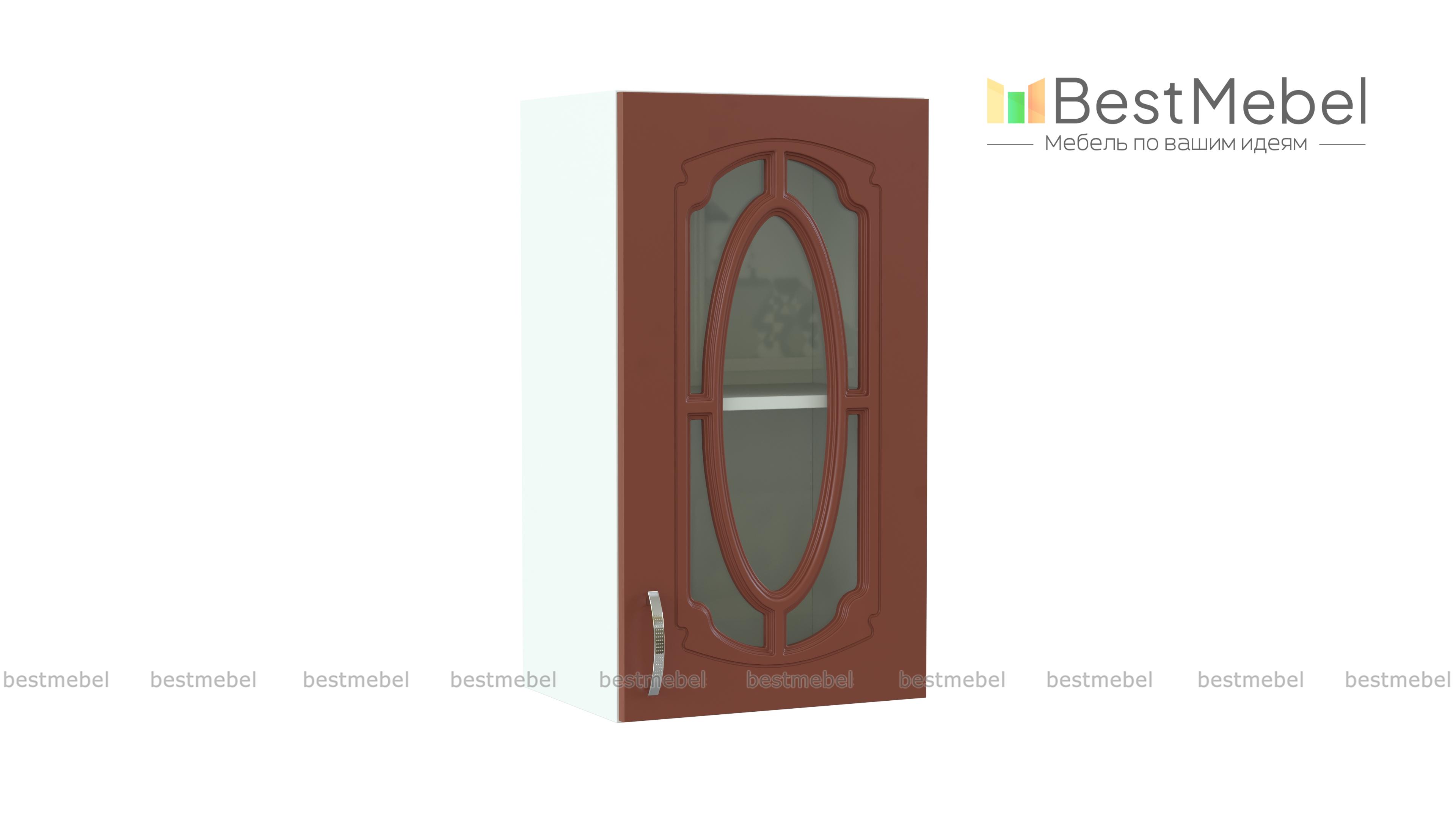 Шкаф верхний с 1-ой остекленной дверцей Настя BMS гармонично дополнит ряд навесных элементов модульного комплекта. Застекленный фасад с фрезеровкой и изящным декором станет настоящим украшением домашнего классического интерьера. Компактный, но вместительный, шкафчик оптимален для хранения посуды, сервизов, хрупких предметов. Купить шкаф верхний с 1-ой остекленной дверцей Настя BMS вы сможете по доступной цене в нашем интернет-магазине с подбором необходимых параметров.