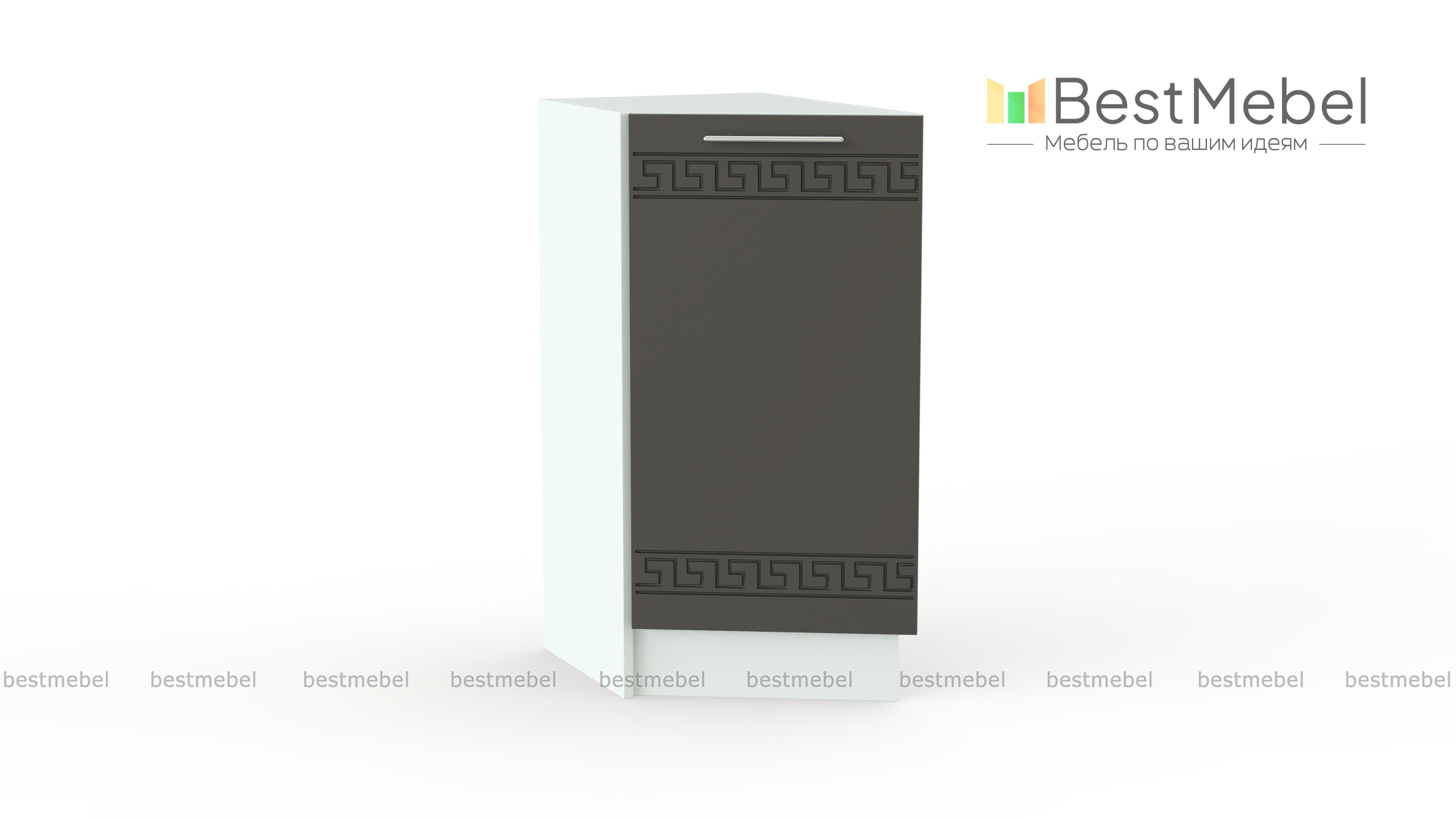 Тумба торцевая Греция BMS предназначена для завершения напольного ряда модулей кухонного комплекта. Тумба позволит сгладить углы и сделает интерьер визуально более легким. Не только эстетичная, но и функциональная, модель оборудована одним распашным отделением с полкой, которое оптимально подходит для хранения мелочей – баночек со специями, небольших кухонных аксессуаров. Фасад в общем для серии стиле украшен неброским орнаментом. Купить тумбу торцевую Греция BMS для стильного дополнения гарнитура вам поможет наш интернет-магазин.