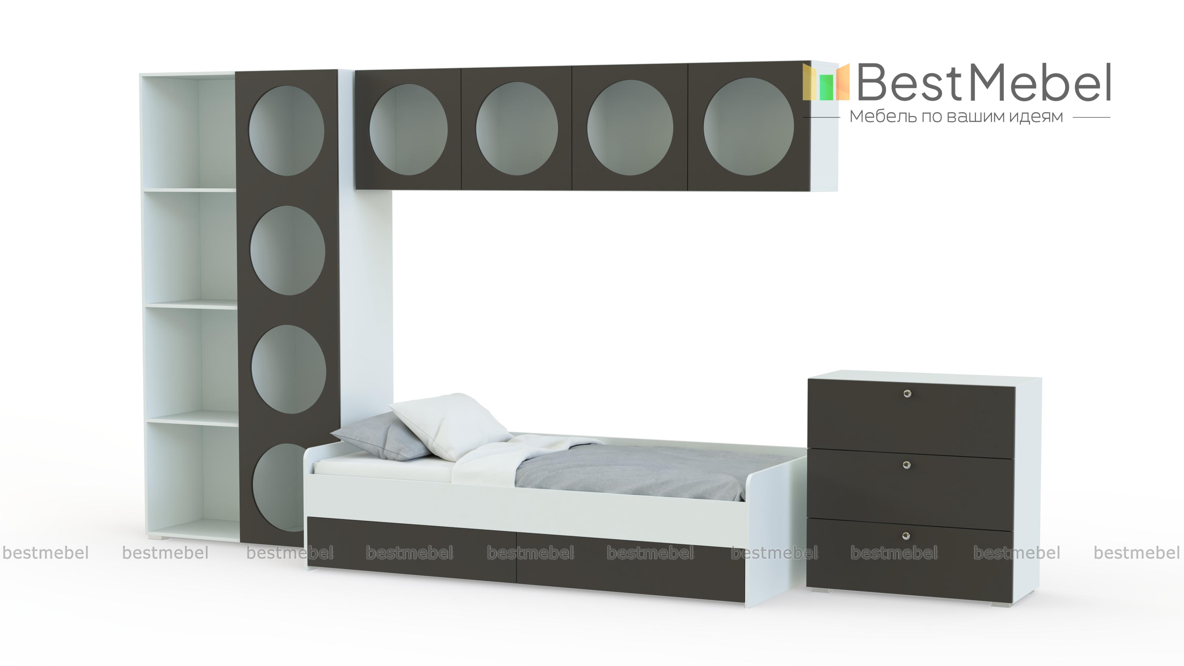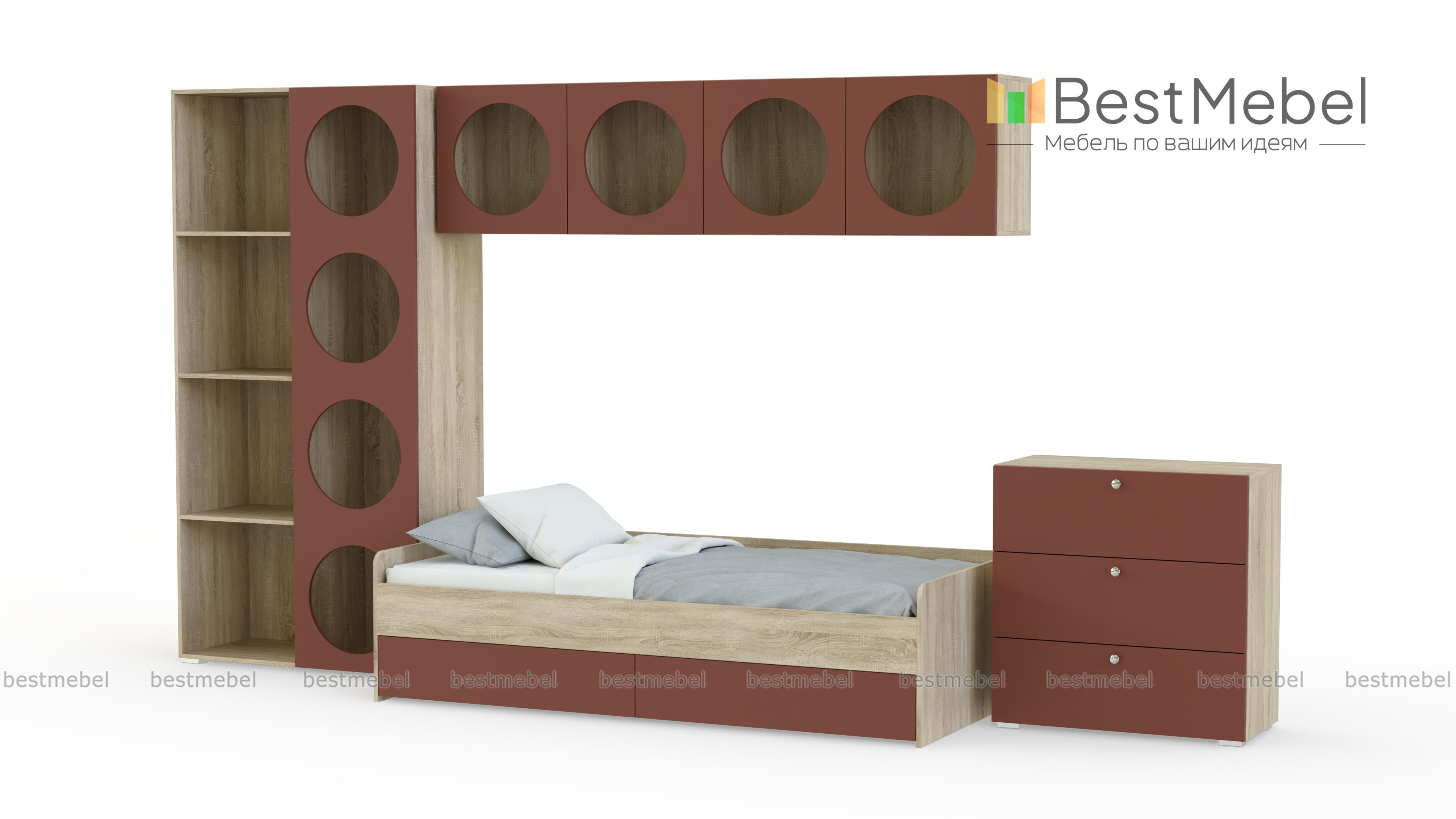 Детская комната Авелин 1 BMS — функциональная и отражающая потребности ребенка. Практичность каждого предмета композиции сочетается с креативным дизайном, качеством и безопасностью. Открытая система хранения для книг, любимых аксессуаров и школьных принадлежностей дополнена бельевым комодом, а еще больше места позволяют получить выкатные ящики под кроватью. Купить детскую комнату Авелин 1 BMS с учетом необходимых размеров вы сможете на сайте нашего интернет-магазина.