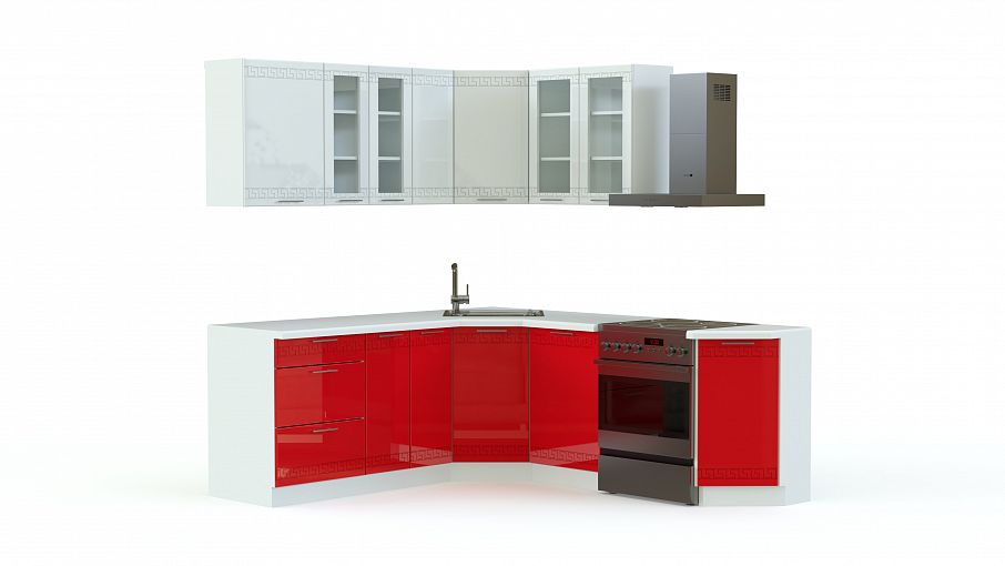 Интересная угловая модель не только украсит Ваш дом, но и принесет с собой уют и комфорт. Выполнена кухня Греция 02 BMS в оригинальном цветовом исполнении, темный низ модных цветов и белый верх ‒ при желании цвета Вы можете поменять. Для удобства пользователей внизу размещается пять больших тумб, особо выделяются оригинально оформленные угловые элементы и пять навесных шкафов, два из которых со стеклянными дверками. Заказать у нас кухню Греция 02 BMS Вы можете, изменив размеры всей модели или ее отдельных элементов.