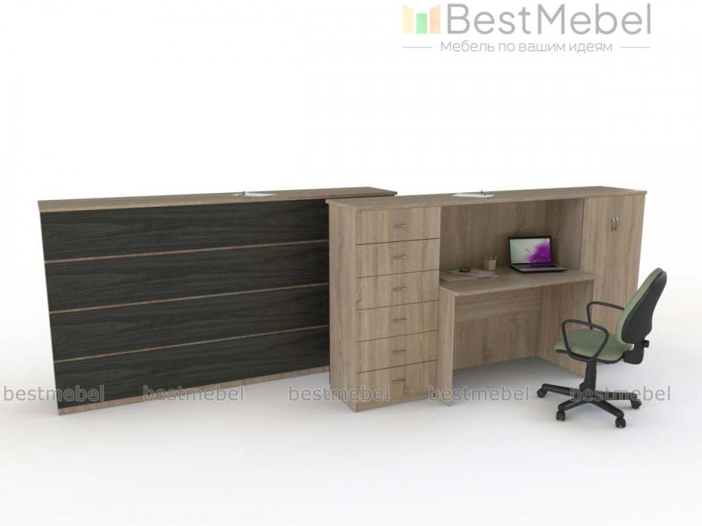 Ресепшен Верта № 2д BMS отличается лаконичным дизайном и гармонично впишется в современные офисные интерьеры. Композиция, выполненная в светлых древесных тонах, включает в себя все самое необходимое для комфортной работы с посетителями. С внешней стороны располагается широкая столешница, а с внутренней – стол со скругленными углами для администратора и две тумбы – распашная с полками и оборудованная шестью выдвижными ящиками. Купить ресепшен Верта № 2д BMS приглашаем в наш интернет-магазин.