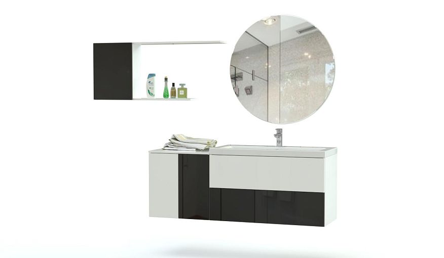 Комплект для ванной комнаты Плайн 5 BMS – это стильная геометрия линий и нестандартное цветовое решение. Подвесная композиция включает в себя широкую тумбу под раковину с выдвижными и распашными отделениями, большое круглое зеркало с подсветкой и шкафчик, дополненный открытыми полками для мелочей. Выполненный в глянцевых контрастных оттенках, комплект станет ярким акцентом в современном домашнем интерьере. Купить комплект для ванной комнаты Плайн 5 BMS с возможностью изменения цвета и размеров приглашаем в наш интернет-магазин.