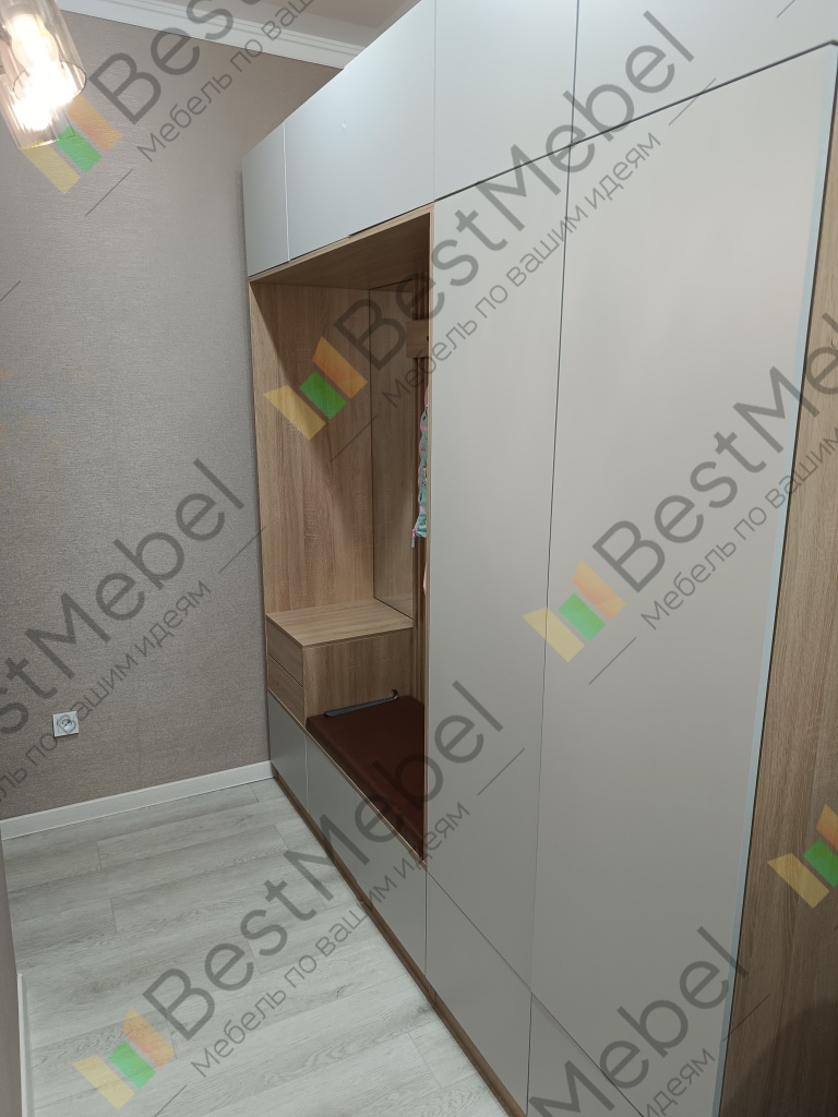 Заказ 00000103349.Взяли прихожую "Дублин 34 BMS" и в целом очень довольны, но сборка – это отдельная история. Главный плюс, который нас покорил – возможность заказать точный размер и цвет. У нас прихожая довольно узкая, и стандартные варианты просто не подходили. Сделали под наши замеры – встала идеально, как будто так и было задумано. Цвет выбрали серый – смотрится очень стильно, современно и правда делает маленькое пространство светлее и визуально просторнее. Функционально – все отлично. Места хранения действительно много: и верхние, и нижние шкафы легко вмещают все куртки, даже толстые зимние. Платяное отделение – спасение для вещей, которые не хочется мять. Очень удобна открытая вешалка с большим зеркалом – можно быстро что-то повесить или посмотреть на себя перед выходом, не бегая в ванную. Ящики внизу здорово организовали всю мелочь – перчатки, шапки, шарфы теперь не теряются. Качество на вид хорошее: фасады ровные, фурнитура пока не подводит (доводчики и шариковые направляющие). Но есть один существенный минус – сборка. Деталей очень много. Когда распаковали все коробки, немного растерялись от количества упаковок и элементов. Инструкция вроде понятная, но сам процесс требует времени, терпения и много свободного места. Собирать в одиночку – крайне сложно и долго.Нам с мужем пришлось потратить почти целый день, работая вдвоем, и это было довольно напряжно. Если вы один или не уверены в своих силах – советую сразу закладывать стоимость сборки мастера или звать очень опытного помощника.Если вы готовы к сборке (или закажете ее) – это отличный вариант для организации порядка в прихожей. Мы довольны результатом, хоть и пришлось попотеть. Выглядит дороже, чем стоит!