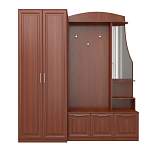 Прихожая Пульс 29 BMS включает в себя разноплановые элементы, которые помогут рационально распределить одежду, обувь и аксессуары. Композиция в классическом стиле включает в себя платяной двухдверный шкаф, распашные тумбы, открытую вешалку, полку под головные уборы и фигурно вырезанное зеркало с полочками для мелочей. Рамочные фасады теплых древесных тонов просты в уходе и износостойки. Купить прихожую Пульс 29 BMS и легко поддерживать дома порядок вам поможет наш интернет-магазин.