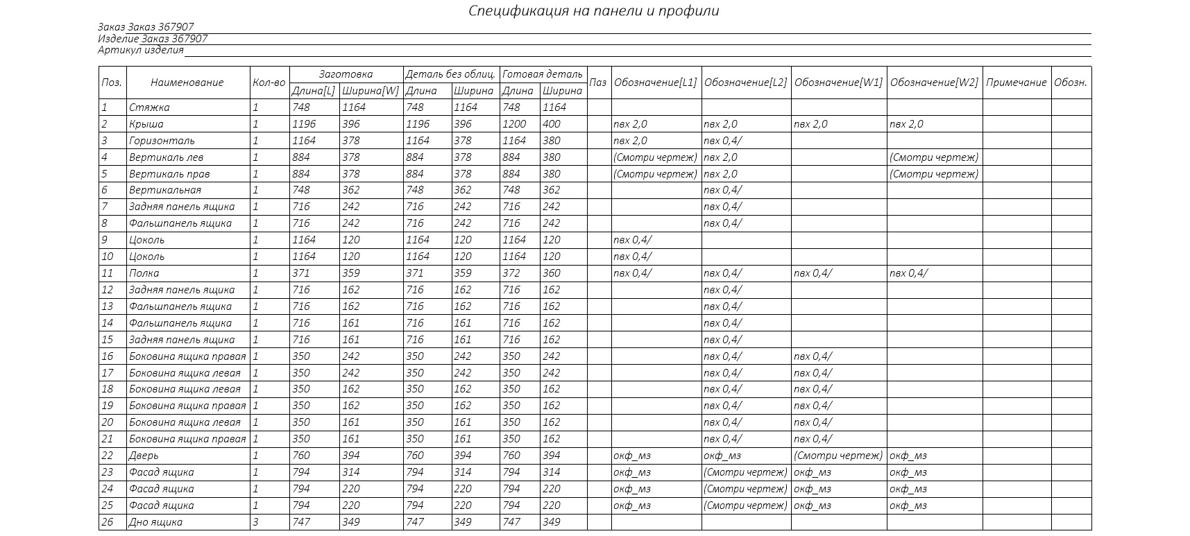 Параметры изделия:
