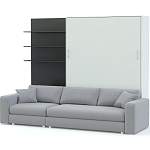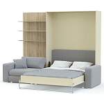Шкаф-кровать Нью 6 BMS поможет оборудовать стильную и эргономичную зону отдыха. Эффектный минималистичный комплект станет практичным выбором для гостиных и студий, освобождая жилое пространство от лишней мебели. Разместиться всей семье или большой компании позволит широкий диван с формованными съемными подушками спинки, для книг и интерьерных украшений предусмотрены открытые полки, а спальное место легко получить с помощью вертикального откидного механизма. Купить шкаф-кровать Нью 6 BMS приглашаем в наш интернет-магазин.