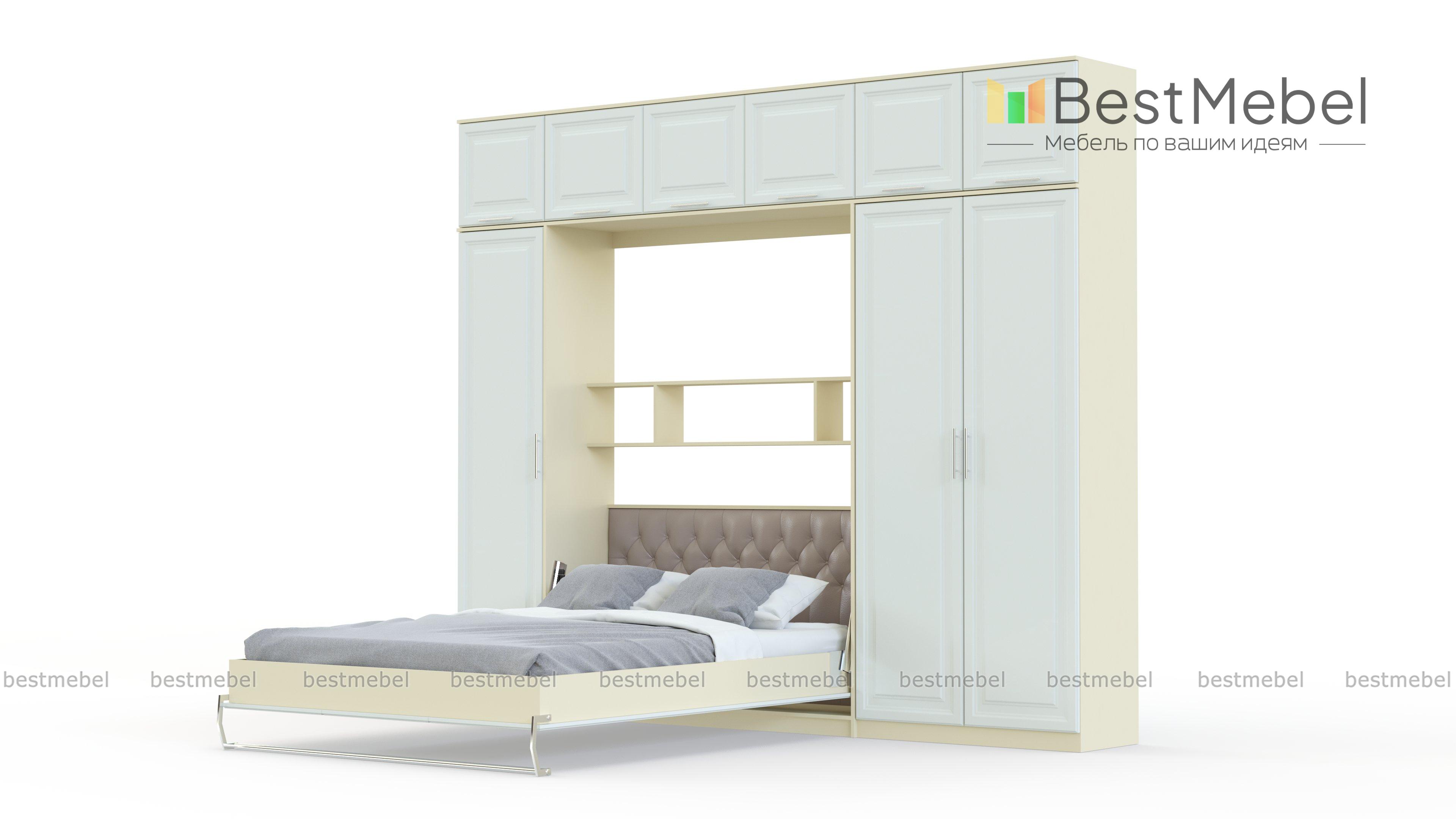 Шкаф-кровать трансформер Долли 46 BMS сочетает в себе классический дизайн, надежность и высокую функциональность. Вместительная стенка с антресолью, распашным шкафом для одежды и бельевым пеналом дополнена модулем-трансформером с откидной кроватью. При помощи вертикального механизма вы получаете просторное спальное место с мягкой обивкой изголовья. Элегантные рамочные фасады модели выполнены в спокойных нейтральных тонах. Купить шкаф-кровать трансформер Долли 46 BMS и сэкономить полезную площадь комнаты вам поможет наш интернет-магазин.