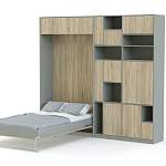 Шкаф-кровать трансформер Джезва BMS в сложенном виде представляет собой шкаф небольшой глубины, оборудованный антресолью, глухими и открытыми асимметричными полками. Подъемная откидная кровать скрыта за имитацией дверей и с легкостью раскладывается при помощи надежного механизма трансформации. Модель обеспечит значительную экономию полезной площади и эффектно смотрится в современных интерьерах. Купить шкаф-кровать трансформер Джезва BMS вы сможете в нашем интернет-магазине, подобрав оптимальные характеристики.
