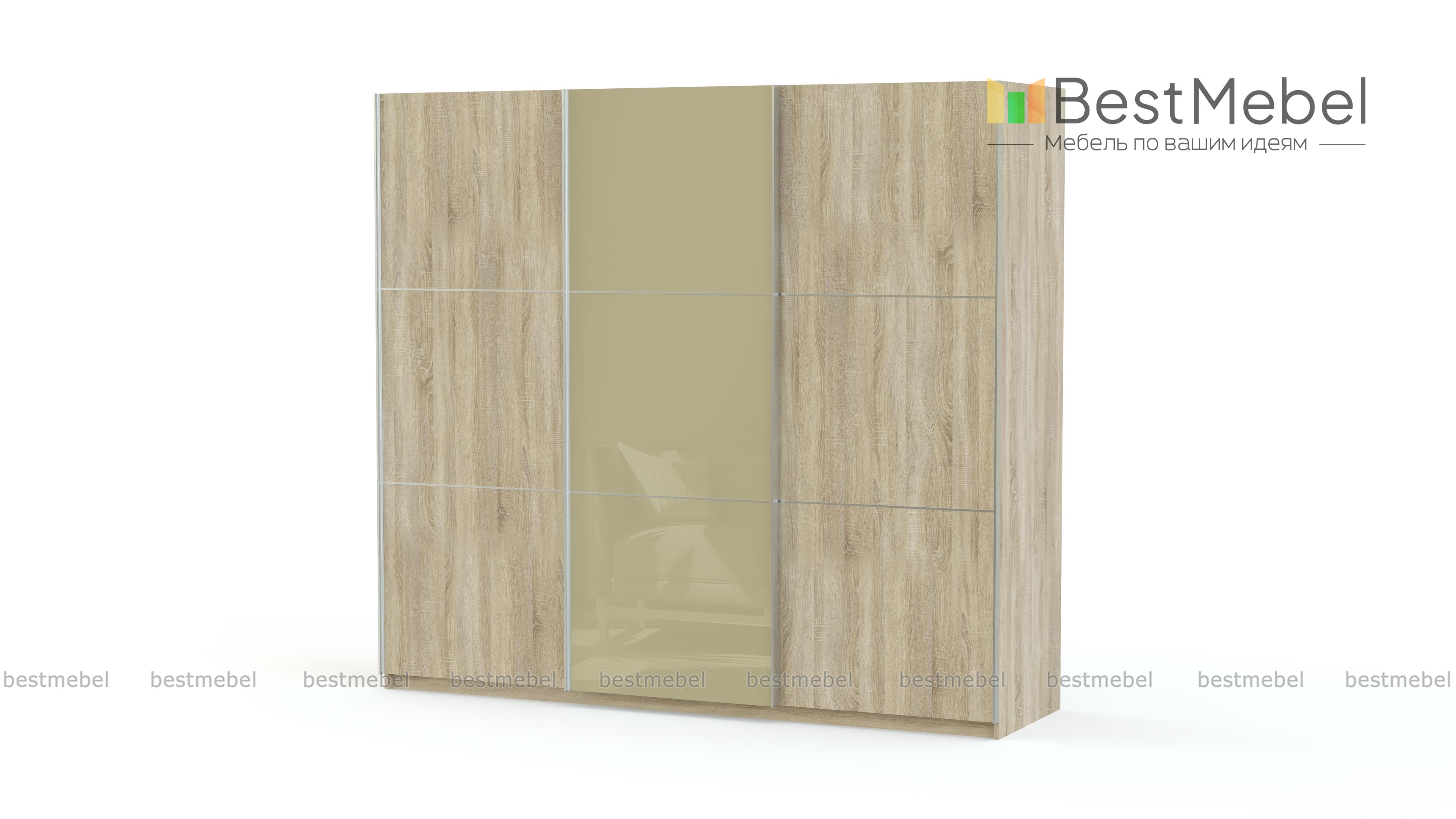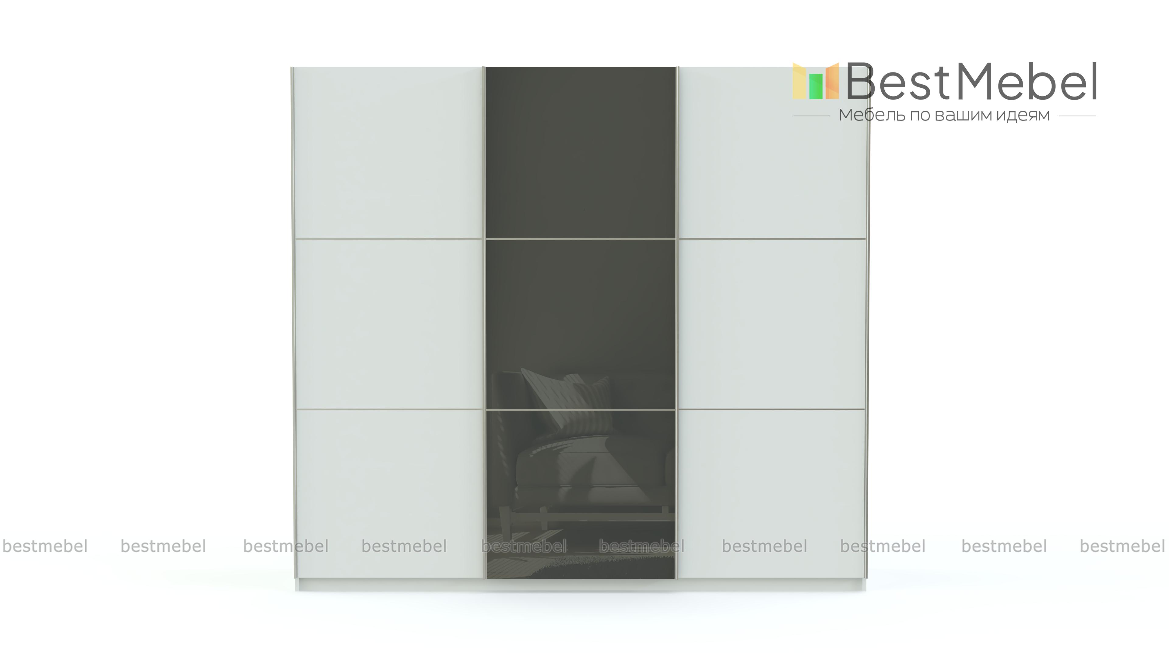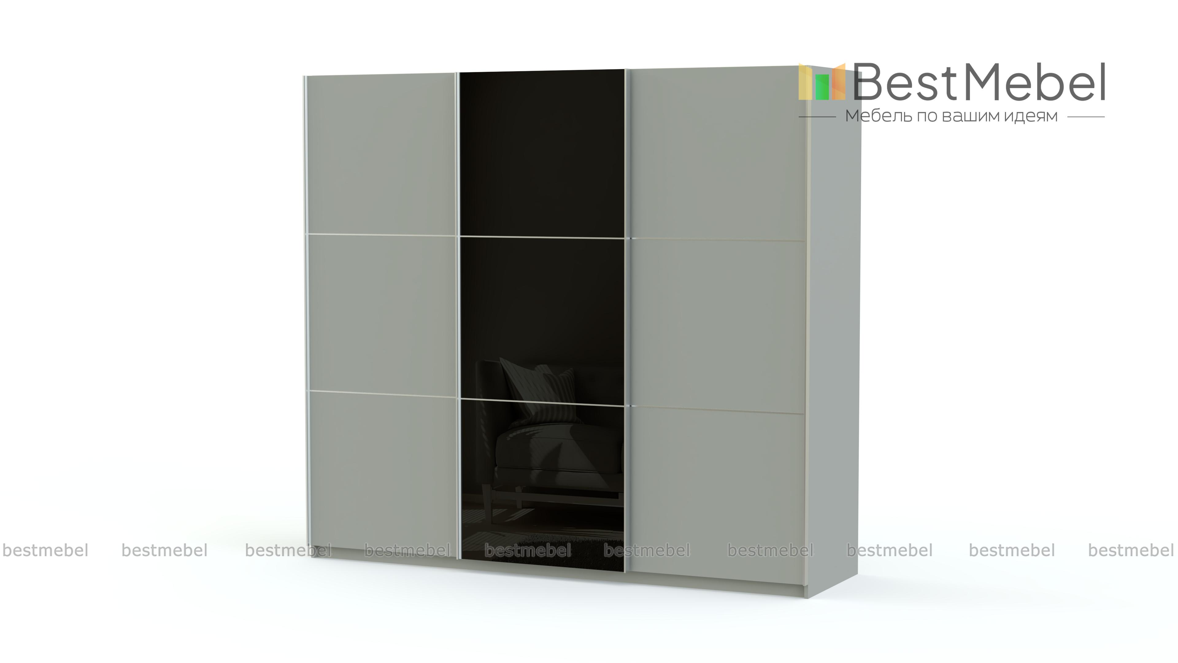 Вместительная трехстворчатая модель Элит 42 BMS позволит максимально комфортно организовать пространство в просторной гостиной или спальне и разместить все необходимые предметы гардероба. За раздвижными подвесными дверями скрыты платяное со штангой и бельевое с полками отделения. Лаконичные фасады модного темного оттенка декорированы эргономичными профиль-ручками и вставкой из стекла в цветной пленке. Стильный и и практичный, шкаф отлично впишется в современный интерьер.