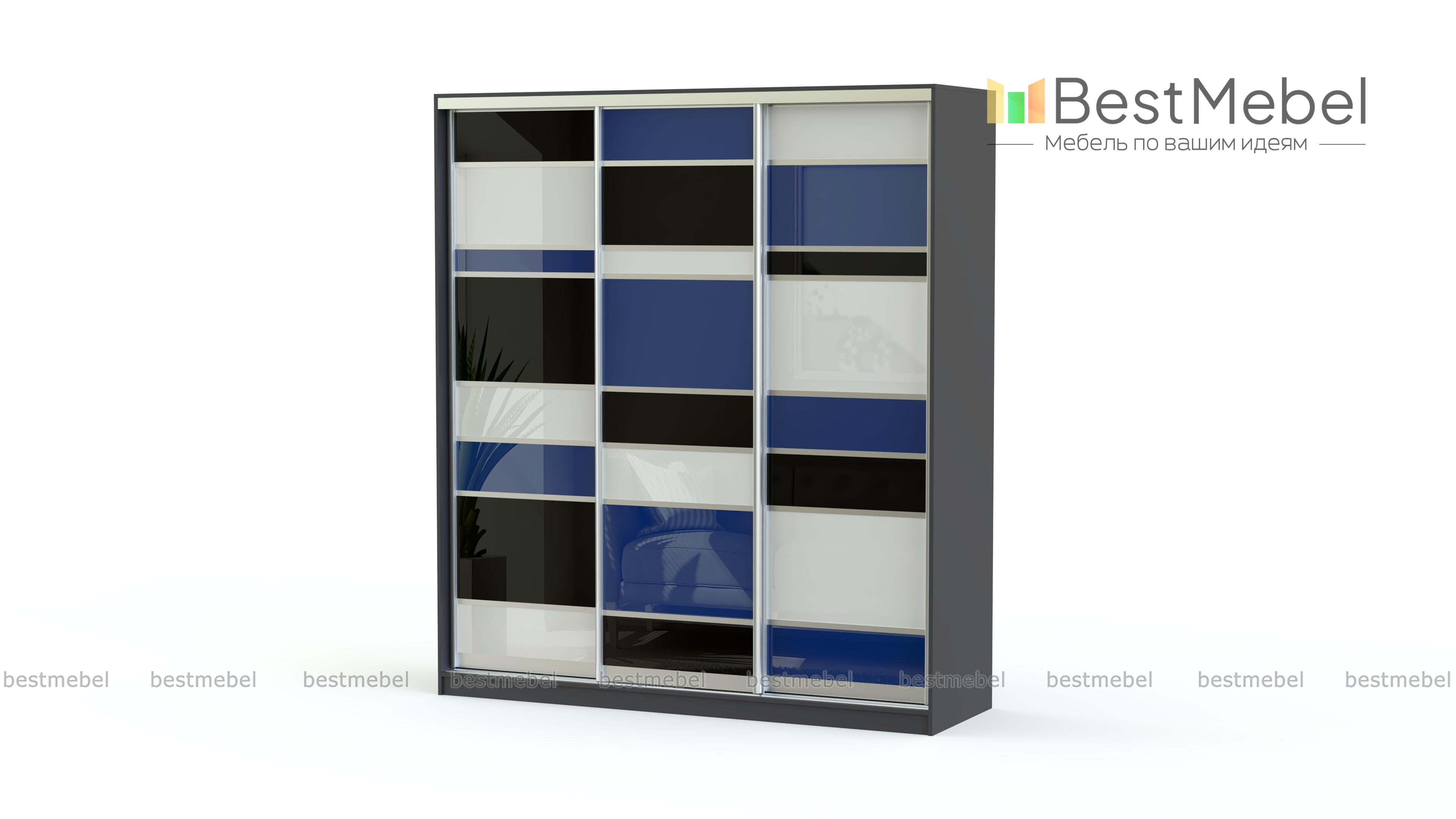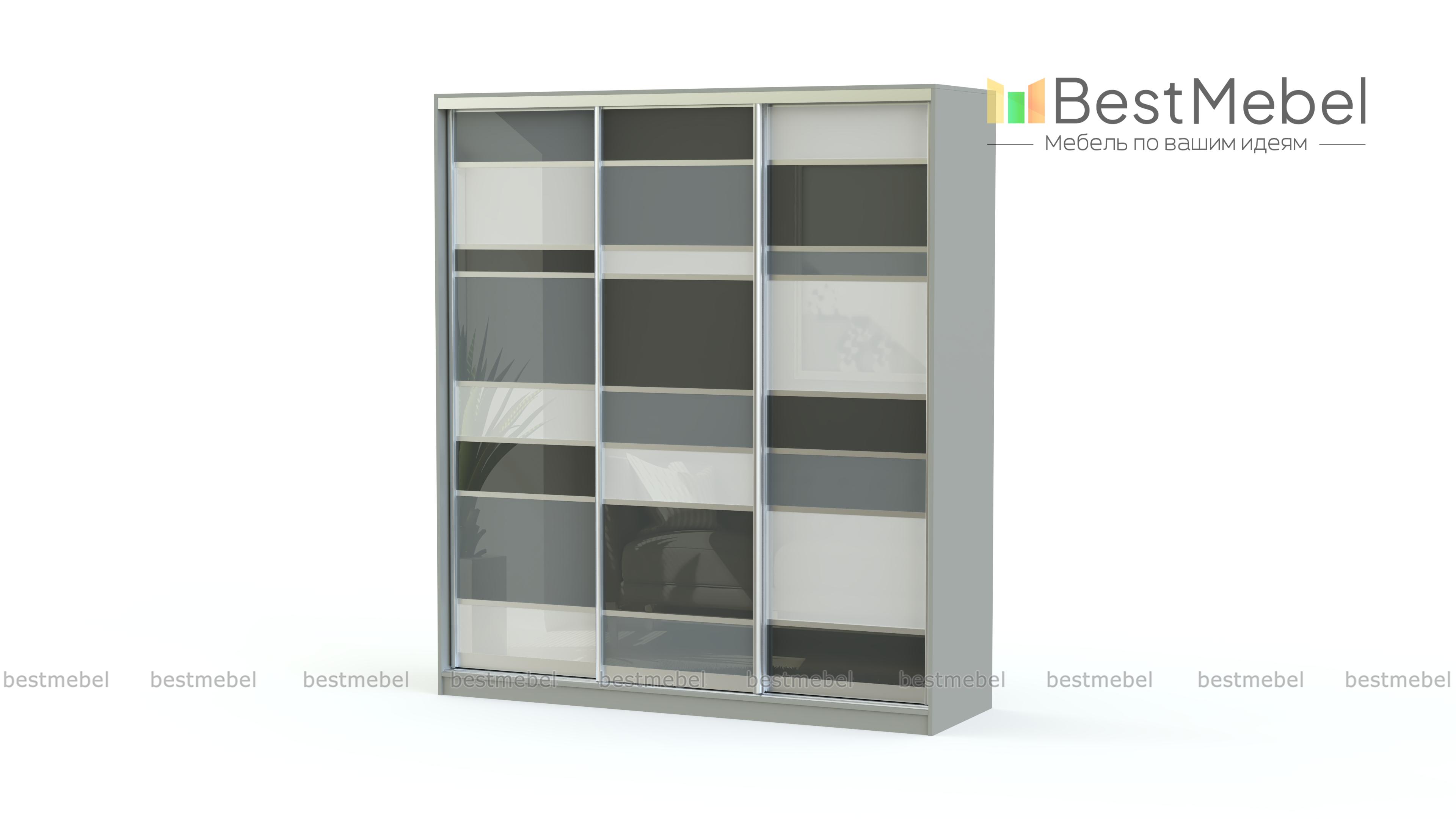 Просторный трехдверный шкаф-купе Грей – это функциональная корпусная мебель, имеющая оригинальный дизайн. Геометрический рисунок, сочетание холодных контрастных тонов зрительно уменьшают габариты изделия, делая его стильным элементом интерьера. Такая корпусная мебель займет достойное место в спальне, гостиной или прихожей Вашего дома. А наличие вместительных и глубоких отделений поможет организовать компактное и аккуратное хранение вещей.