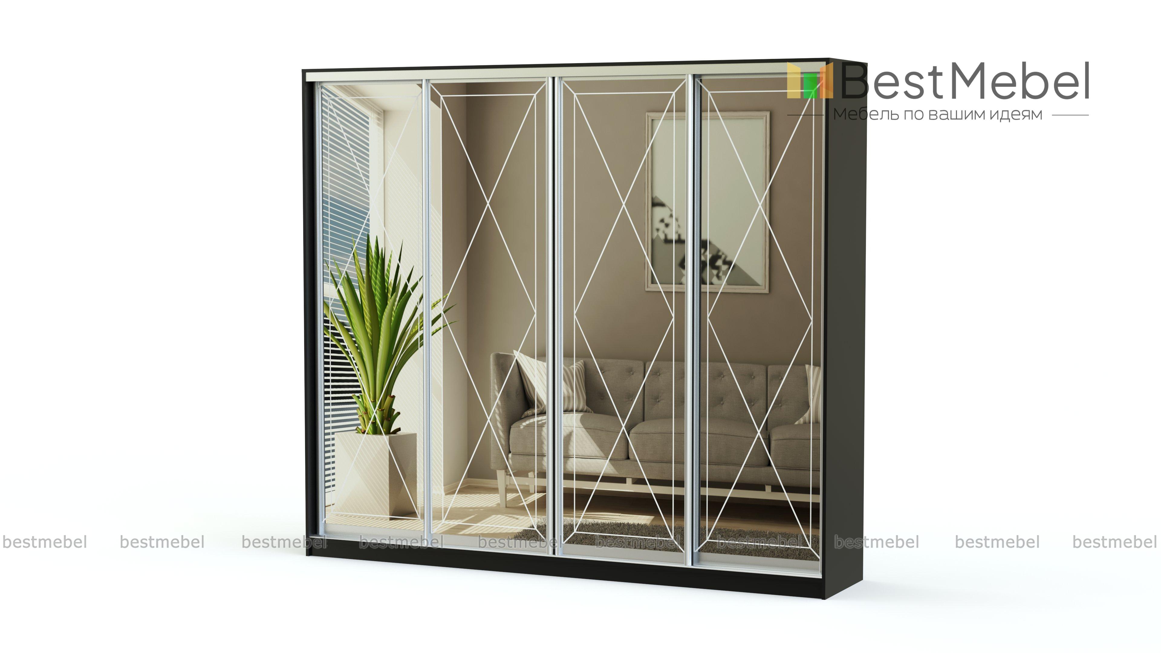 Шкаф-купе Оскар BMS не выглядит громоздко, несмотря на крупные габариты. В четырехдверной модели, выполненной в стиле современной классики, эффектно сочетаются ламинированная плита светлых тонов, зеркала с изящным рисунком и серебристый профиль. Бельевые полки и отделения со штангами обеспечивают достаточно места для хранения одежды семьи и домашнего текстиля. Купить шкаф-купе Оскар BMS вы сможете на сайте нашего интернет-магазина, подобрав удобные габариты, цвет и рисунок.