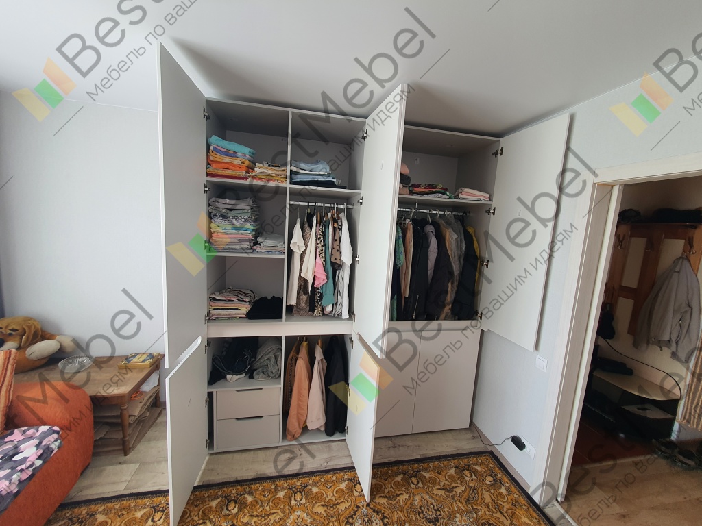 Отличный шкаф. Сделали под мои параметры, под потолок и шириной нужной до шага в 1мм. Расчитали по запросу на каком расстоянии будет центральная стойка (т.к. на стене электрощиток). Заказ 00000750155 Распашной шкаф Эльпассо
