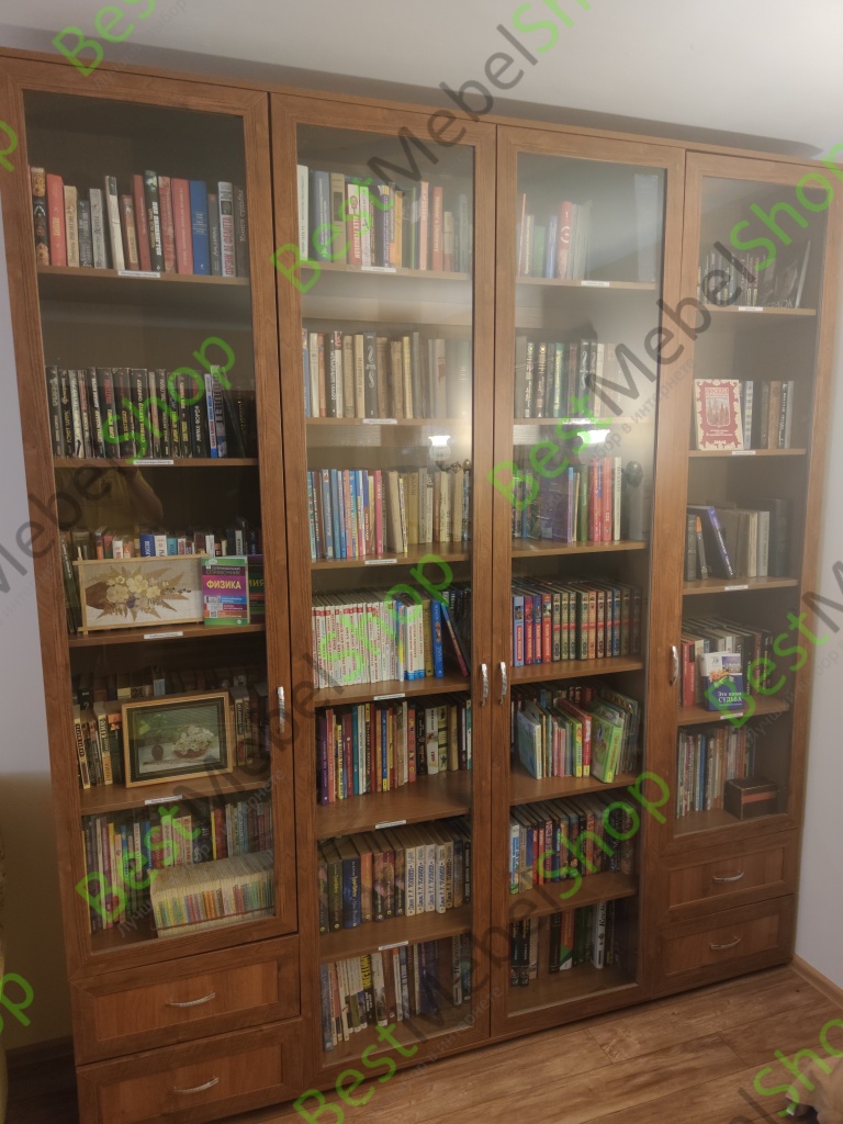 Шкаф для книг 504.08 BMS - № 717400. Шкаф качественный. По нашему заказу заменили выдвижные ящики на распашные двери. Все функционально, только сожалеем, что для крайних секций не догадались заказать зеркала и стеклянные полочки. Был бы шкаф и для книг и для посуды. В итоге мы купили в этом магазине пять единиц товара за пять дней и очень довольны. Спасибо Бэст-Мебель!