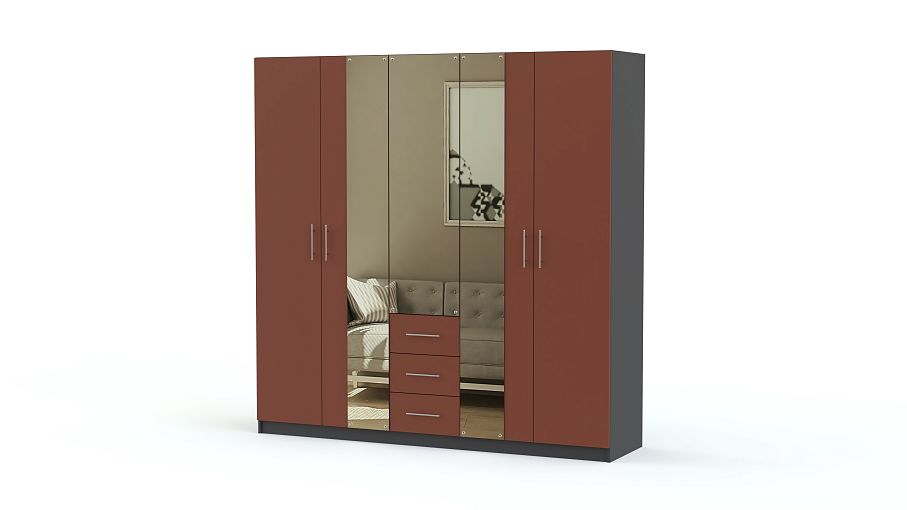 Шкаф распашной Дебора 4 BMS отличается крупными габаритами, вместительностью и эффектно сочетает в оформлении фасада терракотовый и зеркала. Пятидверная модель оборудована просторными отделениями с полками и штангой и тремя расположенными в центре выдвижными ящиками для мелочей. Шкаф гармонично впишется в современный спальный интерьер благодаря возможности выбора цветового решения и надолго сохранит эстетичный вид благодаря износостойким материалам. Купить шкаф распашной Дебора 4 BMS приглашаем выгодно в наш интернет-магазин.