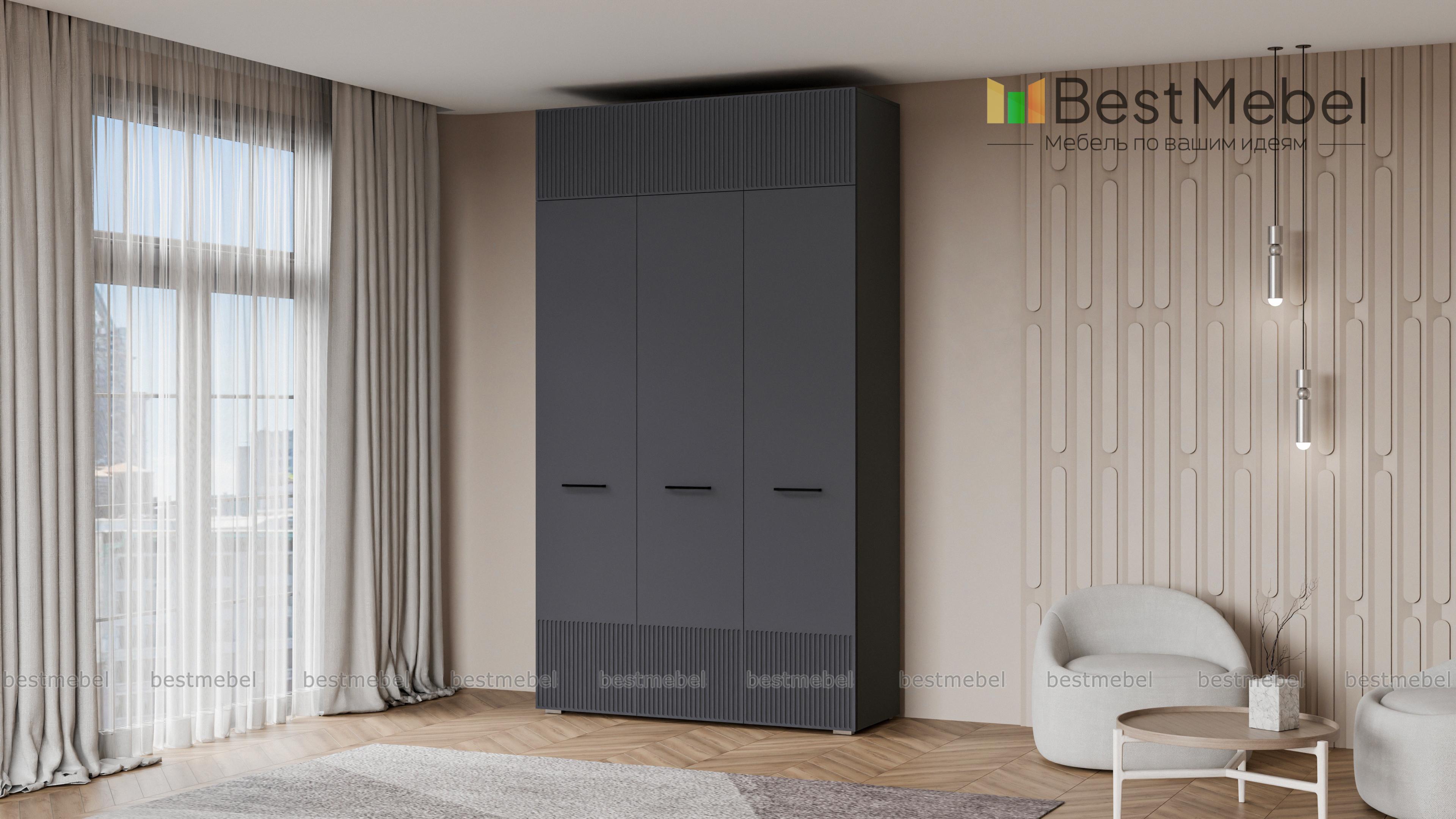 Шкаф распашной Декарт 9 BMS выполнен в современном классическом стиле. Нижняя часть фасада и дверцы антресоли украшены лаконичным стильным рельефом, в роли акцента выступают поперечные ручки-скобы. Платяное отделение справа и ряд бельевых полок слева — оптимально для хранения базового гардероба в спальне, детской комнате или прихожей. Купить шкаф распашной Декарт 9 BMS приглашаем в наш интернет-магазин с возможностью выбора габаритов, цвета и фурнитуры.