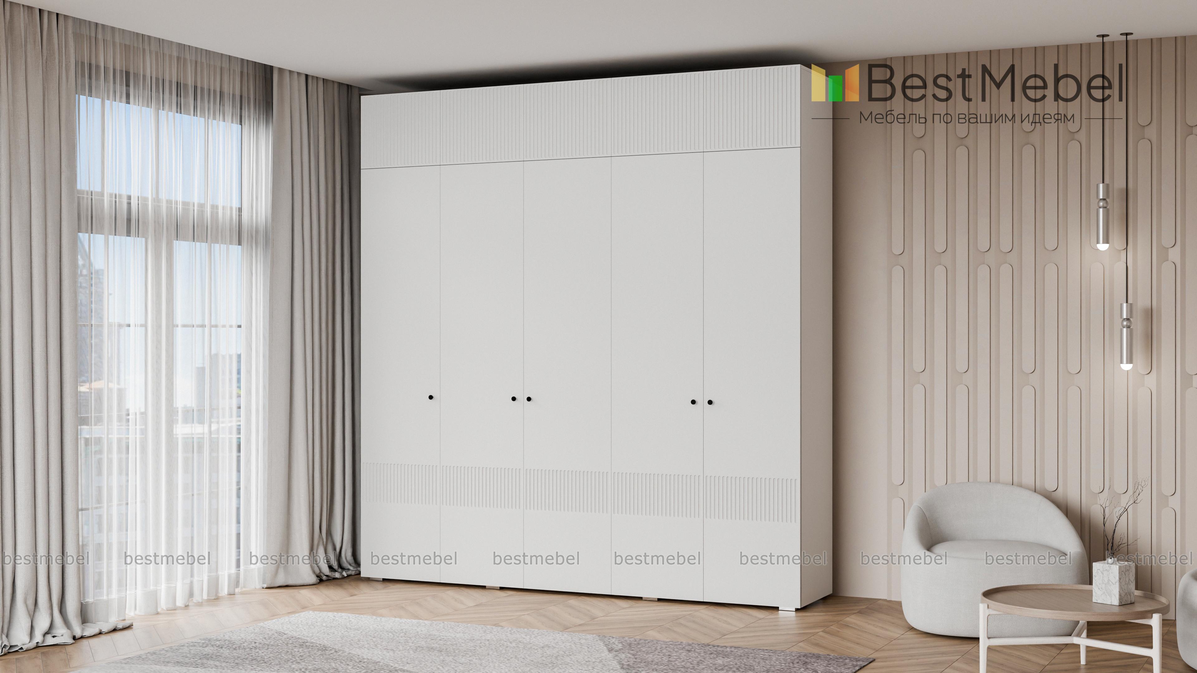 Шкаф распашной Джосс 11 BMS с антресолью — практичное и эстетическое решение для вашего дома. Пространство будет занято до потолка — значит, появится больше места для хранения как повседневного, так и сезонного гардероба. Внутри пятидверного шкафа располагаются две штанги и ряд бельевых полок, а сплошной фасад яркого аквамаринового цвета декорирован стильным рельефом. Купить шкаф распашной Джосс 11 BMS вы сможете на сайте нашего интернет-магазина в необходимом размере и любых оттенках из каталога.