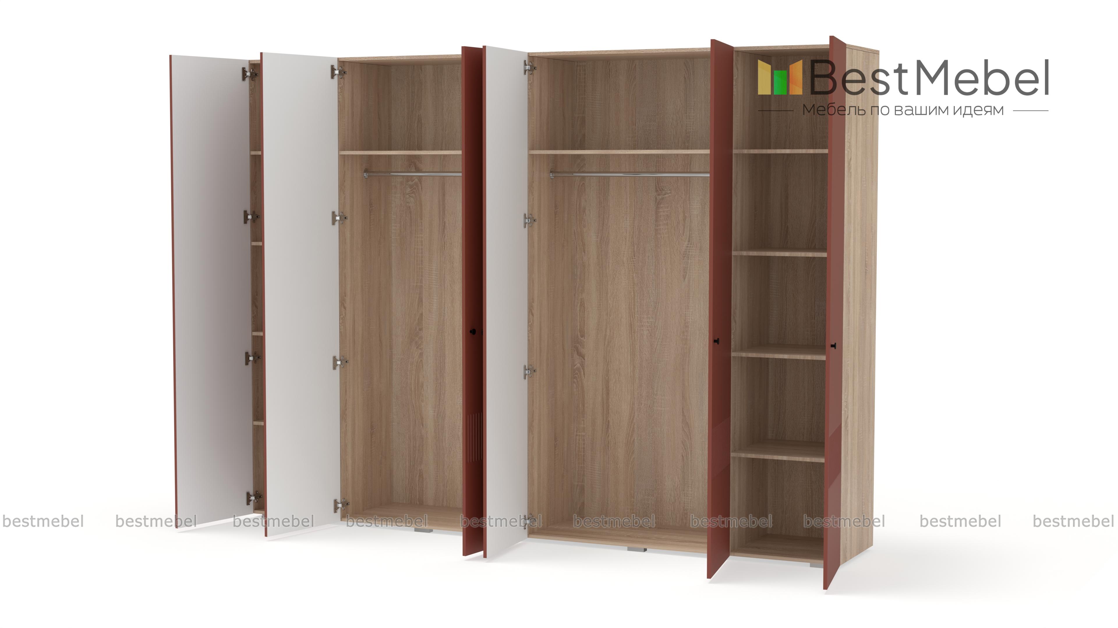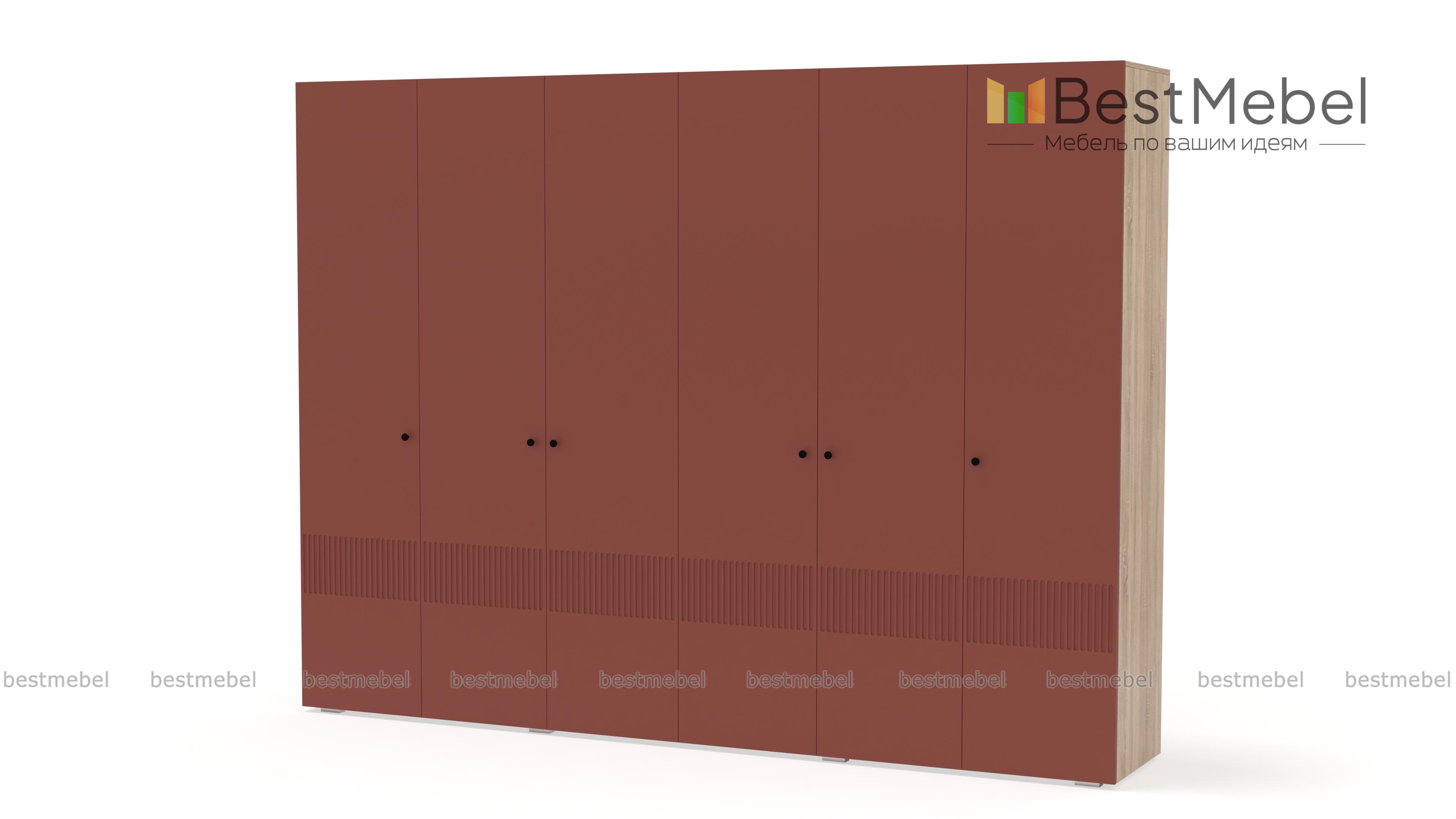 Шкаф распашной Джосс 6 BMS отличается простыми строгими линиями и актуальным декором. Шестидверный шкаф со сплошным цветным фасадом и фрезеровкой прекрасно подходит для спален, прихожих и детских. Два просторных отделения с платяными штангами и верхними полками дополнены однодверными секциями для хранения сложенной одежды и белья. Купить шкаф распашной Джосс 6 BMS вы сможете в нашем интернет-магазине, подобрав размеры, наполнение и подходящую цветовую гамму.