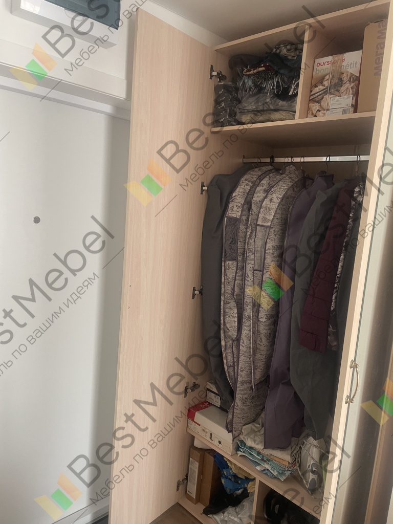 В маленькой спальне уже была кровать с пеналами и надстройкой. Необходим был небольшой шкаф с особыми параметрами - узкий, с узкими дверками, но чтобы достаточно вместительный для повседневной одежды. Заказав Ривьеру по своим размерам, осталась очень довольна!!! Шкаф вписался, как будто часть гарнитура, до каждого полусантиметра всё выполнили очень точно, нет ни единого зазора ни между стеной, ни между пеналами, ни по высоте. Класс!!!