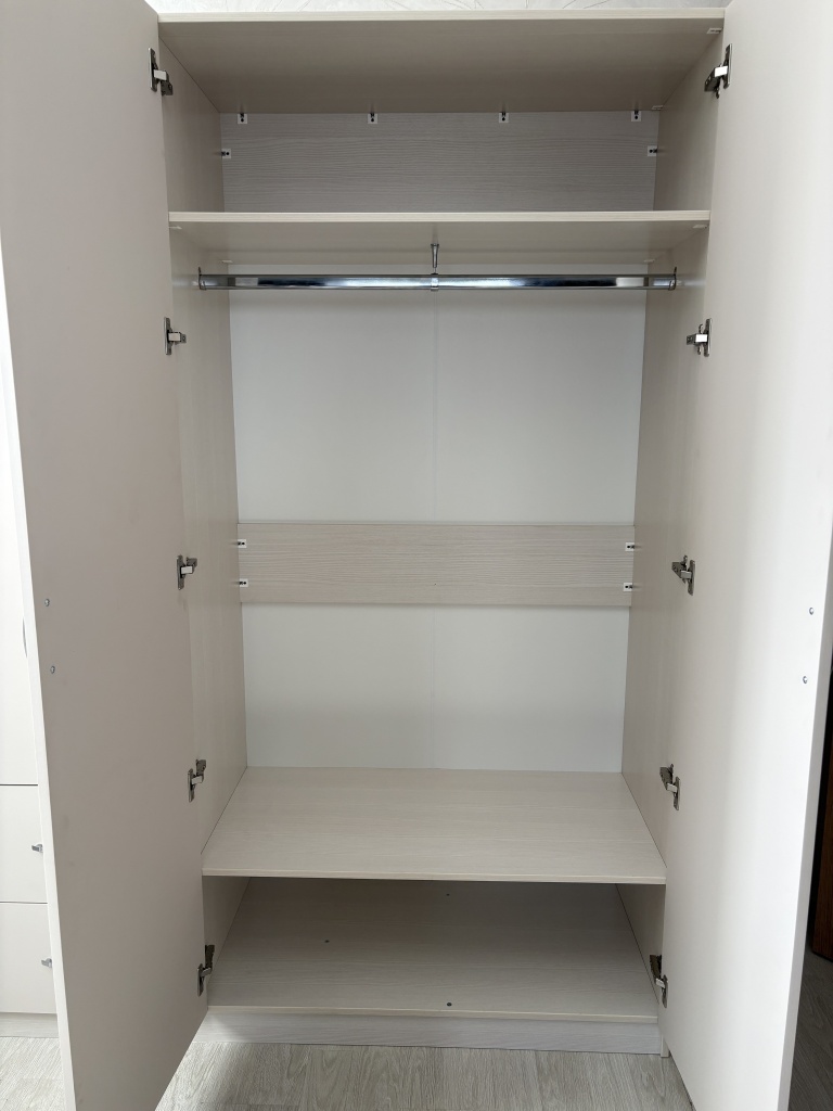 Переехали несколько месяцев назад в большую квартиру и решили приобрести новую мебель. Долго с мужем спорили, какой нам нужен шкаф. Решили взять нечто универсальное и на глаза попалась эта модель. Долго не думал и купили. Привезли нам шкаф и мы не были разочарованы. Мужу очень нравится зеркало на одной из дверей шкафа. А я рада, что вся наша одежда поместилась в один шкаф и рада, что есть полка для белья.