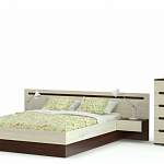 Лаконичный стильный комплект для современных интерьеров. Отличительная особенность спальни Виго комплектация 3 BMS – компактные небольшие тумбы, закрепленные на панели спинки по бокам от кровати. Такое расположение не только оригинально, но и экономит пространство, упрощает уборку помещения. Постельное белье и предметы гардероба разместятся в комоде с выдвижными ящиками и эргономичными ручками. Отличное дополнение – туалетный столик с навесным зеркалом.
