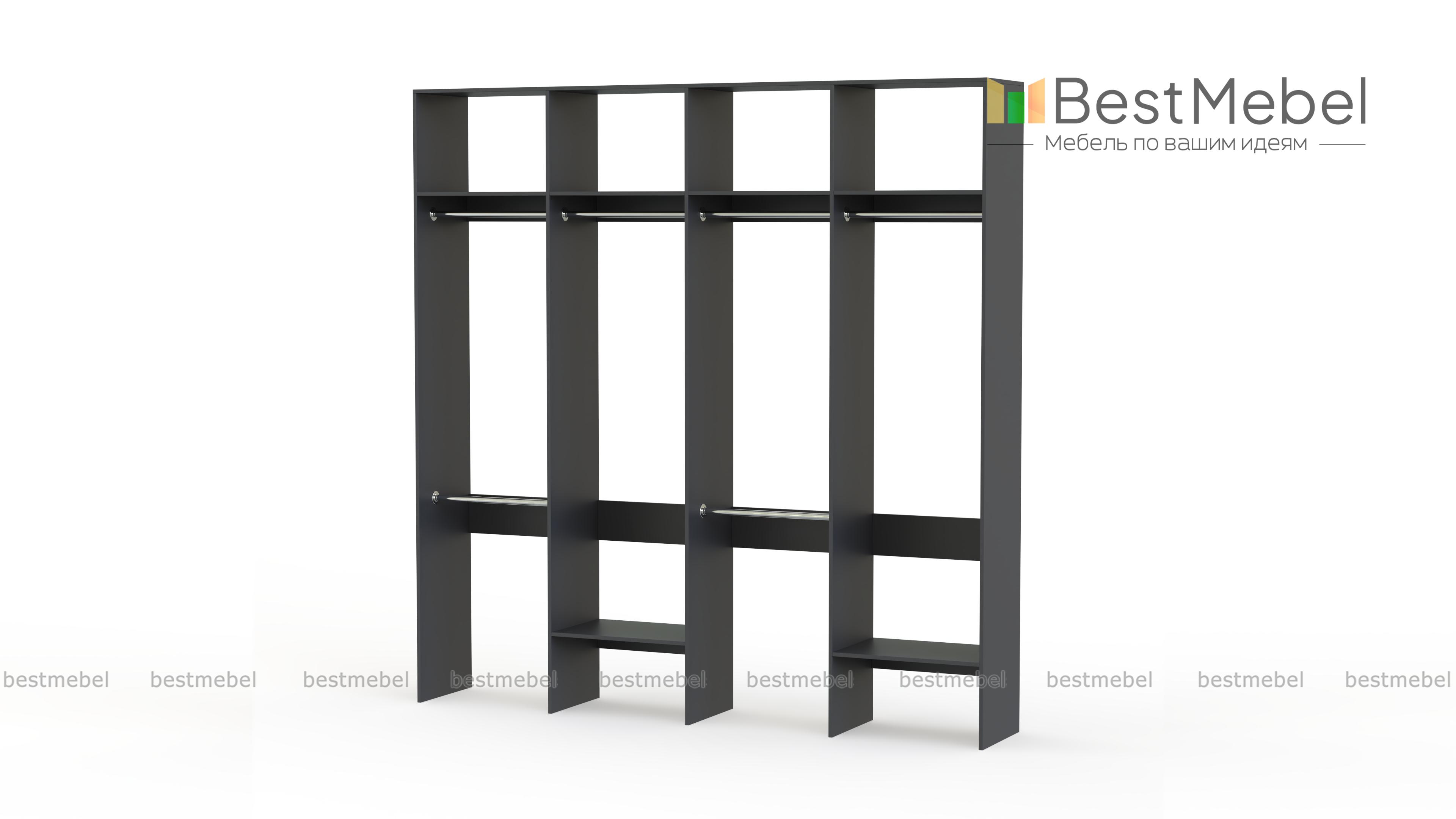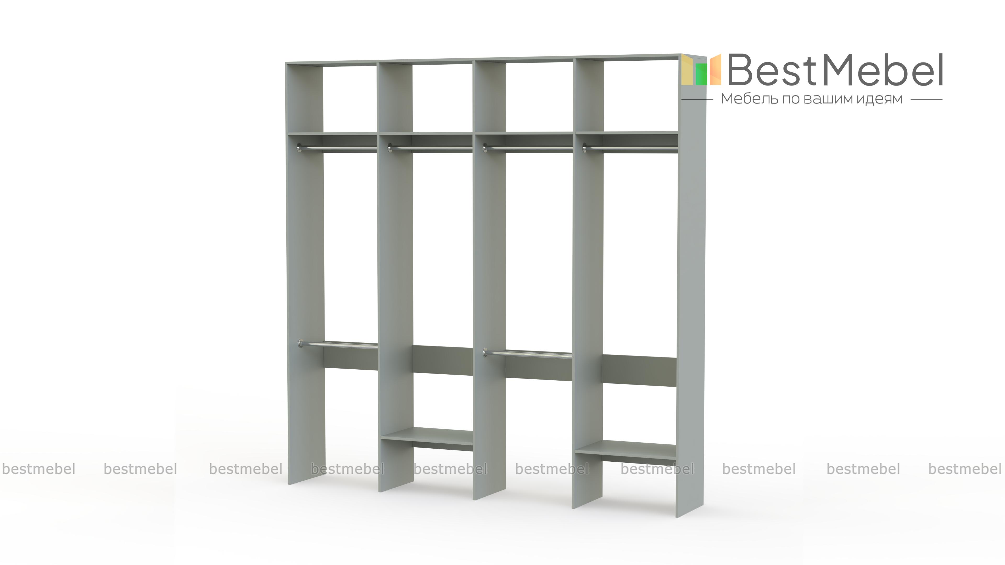 Стеллаж для одежды Мирта 62 BMS представляет собой внешне легкую и вместительную конструкцию. Разделенный на четыре секции, стеллаж оборудован расположенными на разной высоте штангами для короткой и длинной одежды, верхними и нижними полками. Отличное решение для гардеробной, стеллаж экономит пространство и обеспечивает аккуратное хранение одежде и обуви. Купить стеллаж для одежды Мирта 62 BMS, подобрав необходимые размеры, вы сможете на сайте нашего интернет-магазина.