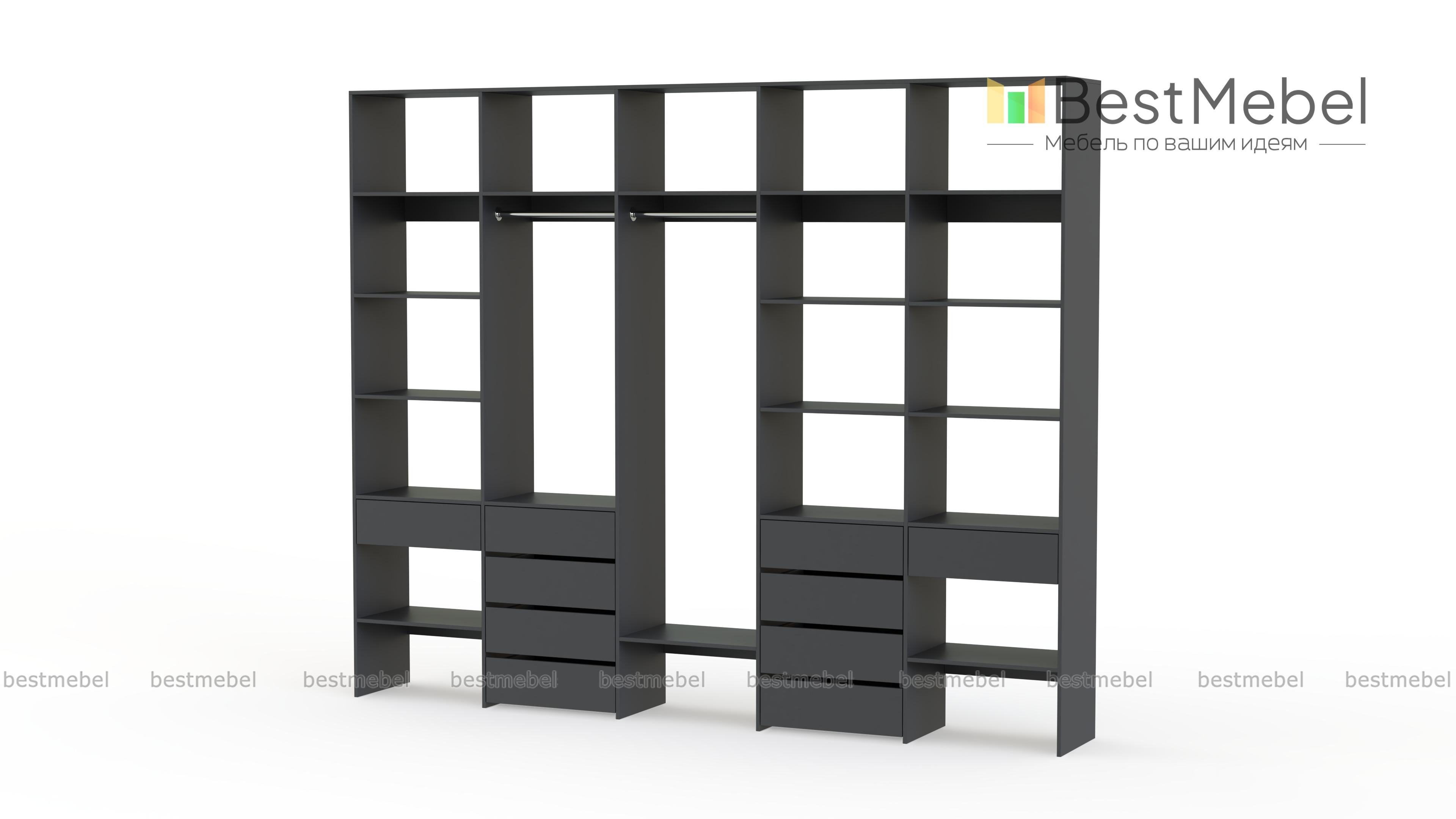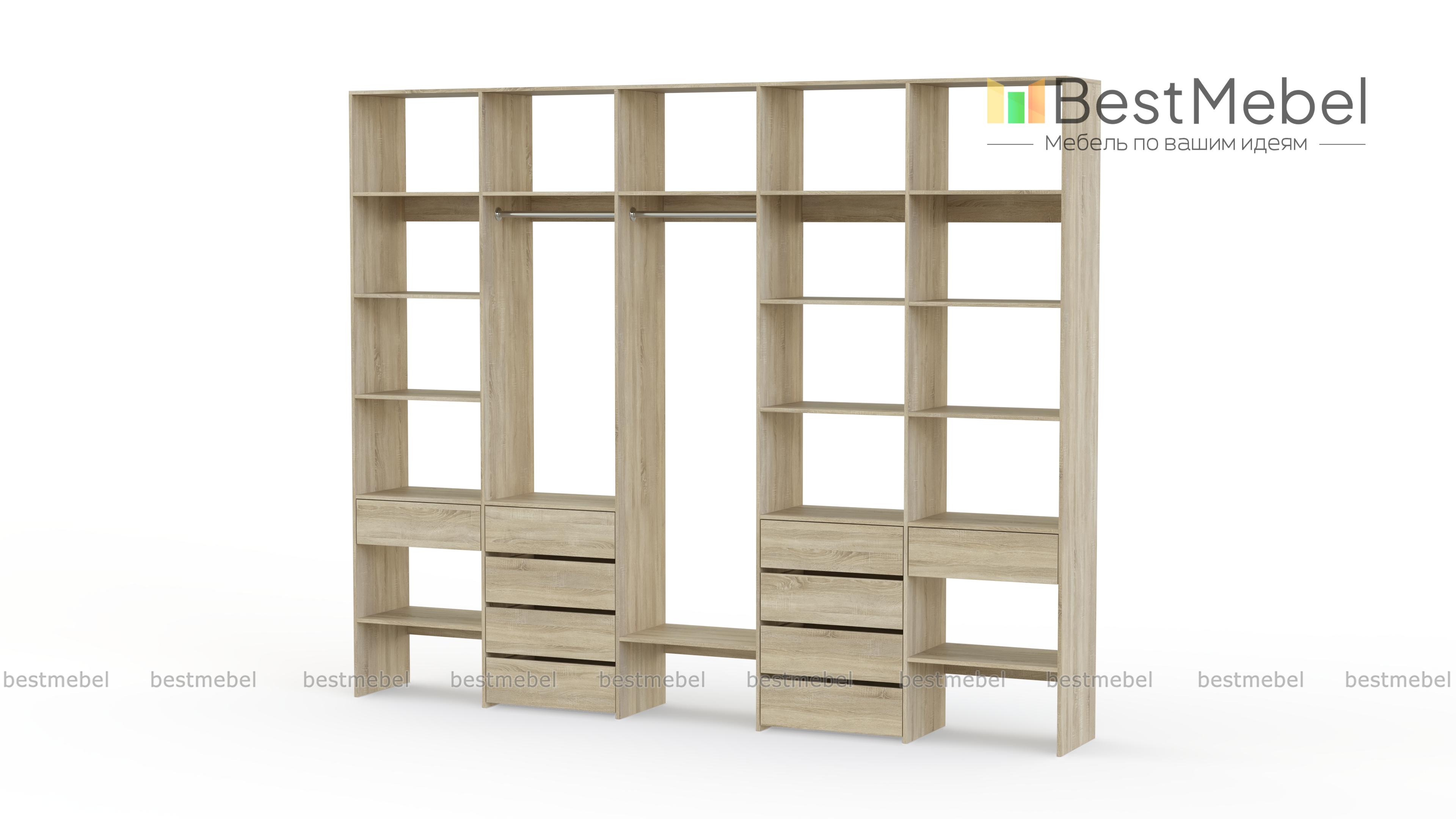 Стеллаж для одежды Мирта 71 BMS вместителен и подходит для просторных помещений. Использование ламинированной плиты делает модель недорогой, но при этом надежной и не требующей сложного ухода. Продуманная конфигурация стеллажа предусматривает платяные секции под одежду разной длины, большое количество полок и выдвижные ящики, заменяющие отдельно стоящие комоды. Купить стеллаж для одежды Мирта 71 BMS в нужном размере и гармонирующем с интерьером оттенке вы сможете в нашем интернет-магазине.