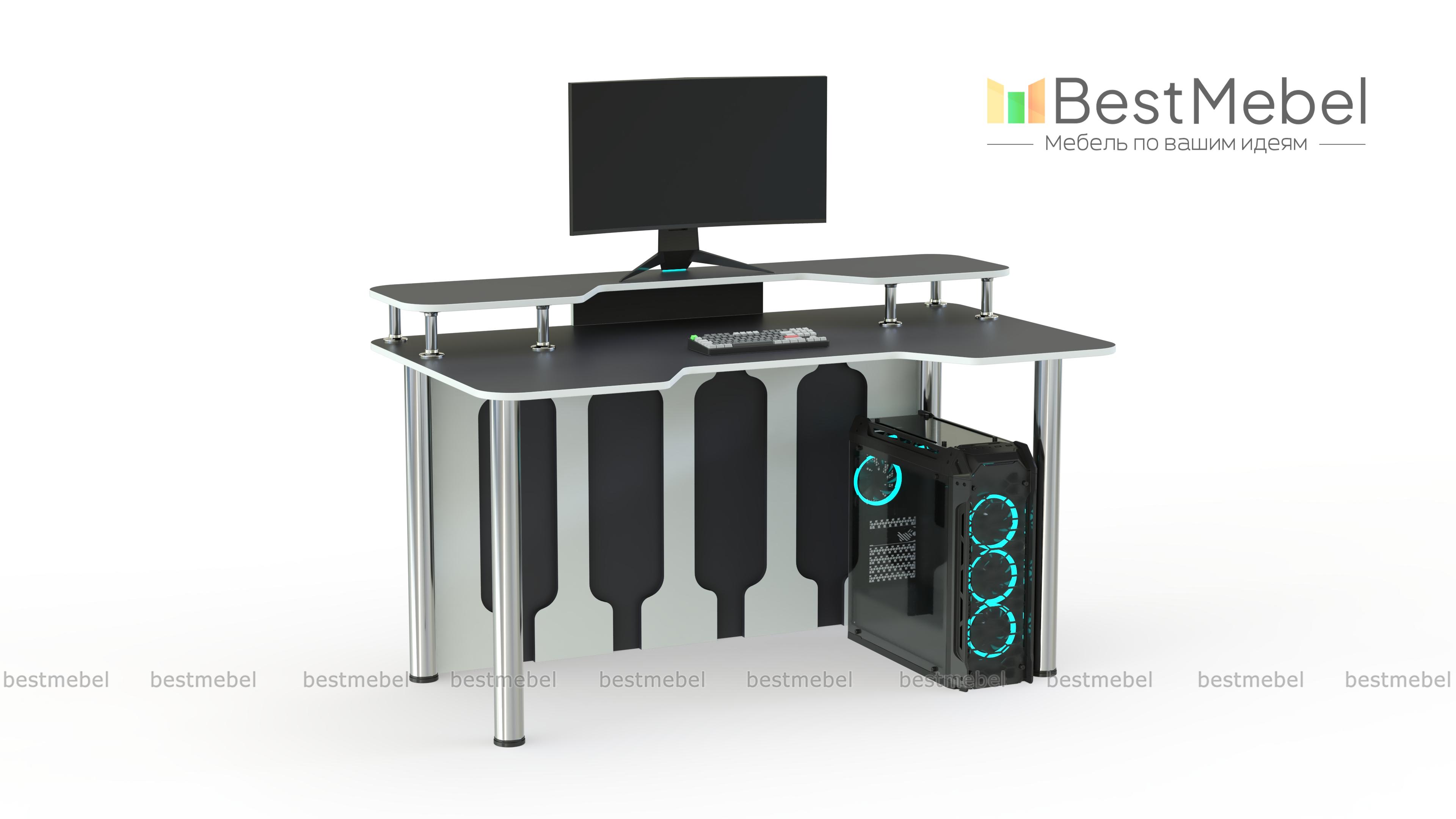 Игровой стол Персей тип 1 BMS, выполненный в черно-белой гамме, отличается креативным и функциональным дизайном. Просторная столешница имеет эргономичный вырез в передней части и дополнена надстройкой для размещения монитора и периферийных устройств. Устойчивость и внешнюю легкость придают конструкции регулируемые хромированные опоры и задняя стенка с декоративными вырезами. Купить игровой стол Персей тип 1 BMS приглашаем в наш интернет-магазин с выбором цвета по каталогу.