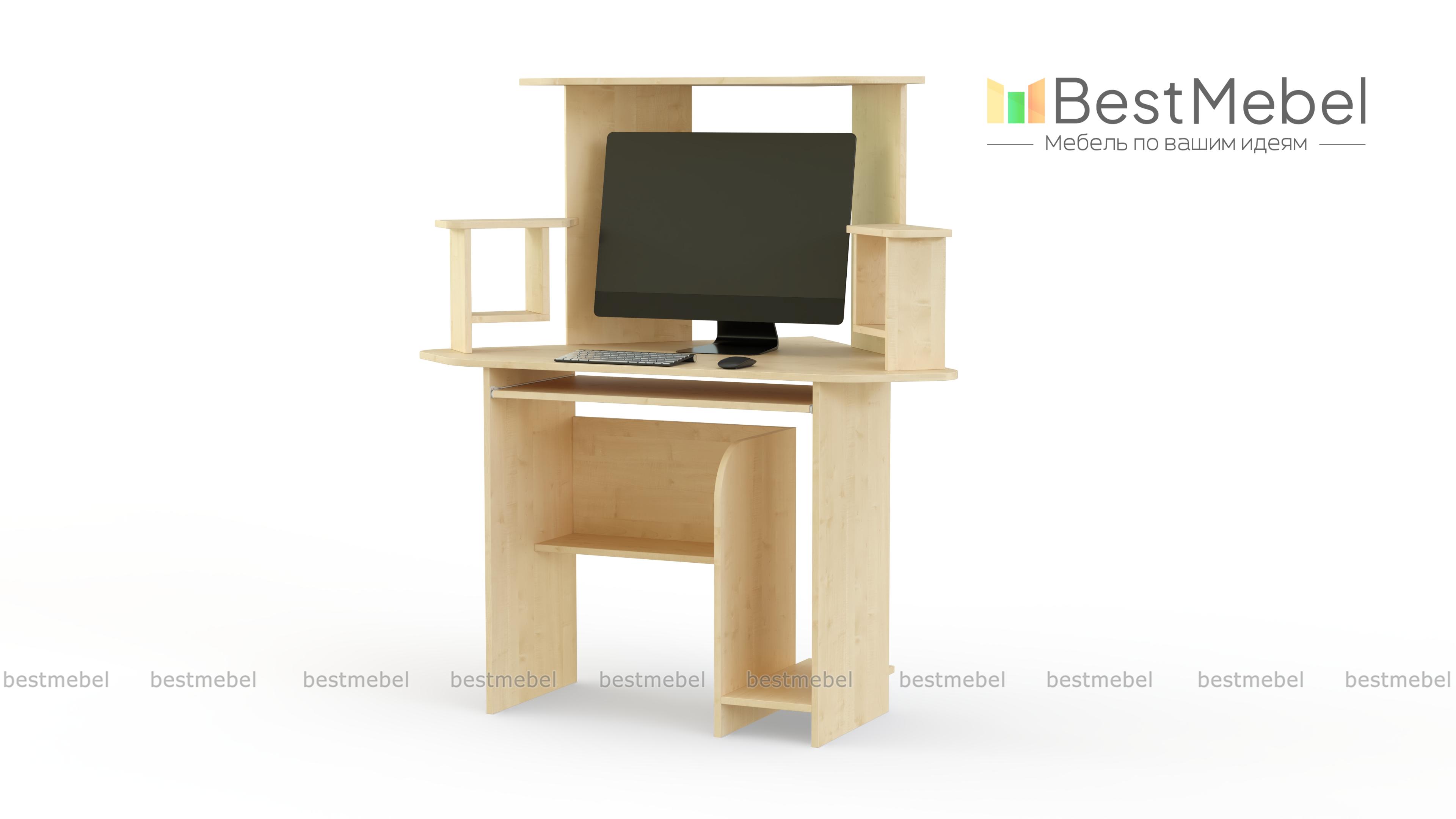 Стол компьютерный СКУ-1, выполненный в классическом стиле прекрасно подойдет для небольшой комнаты. Удобный угловой вид данной модели прекрасно впишется в Ваш кабинет и не займет много места. Наличие нескольких полок позволяет разместить диски, колонки и необходимые Вам мелочи. Очень хорошо организовано пространство под столом. Там есть полка, на которую можно положить пачку бумаги для принтера или парочку журналов. Если Вас заинтересовала данная модель, можно недорого заказать ее у нас.