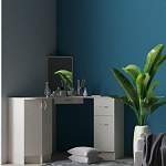 Стол угловой косметический Марио BMS гармонично дополнит современный спальный интерьер. Выполненная в белом цвете, модель отличается визуальной легкостью, а сэкономить полезную площадь комнаты поможет практичная угловая форма. Столешницу с плавным вырезом переднего края дополняет небольшое зеркало, выдвижной ящик для мелочей и две тумбы – распашная и с тремя ящиками. Купить стол угловой косметический Марио BMS для комфортного ухода за собой приглашаем в наш интернет-магазин.