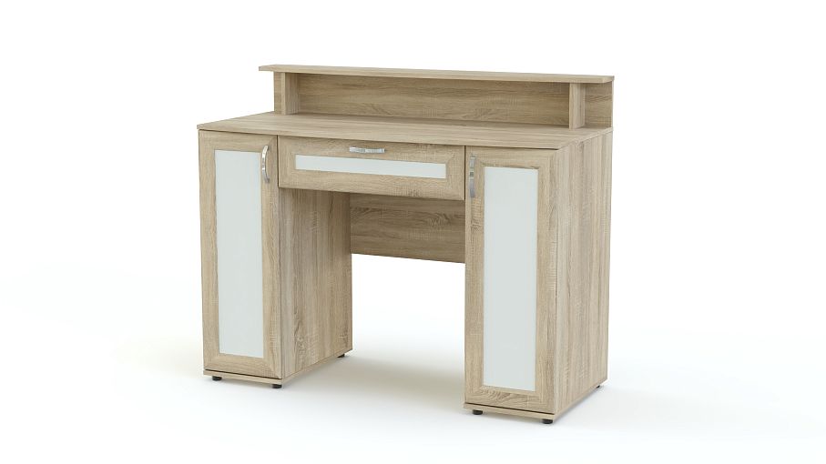 Туалетный стол Магнус 5 BMS гармонично дополнит интерьер современной спальни и поможет разместить под рукой все необходимые уходовые средства. Модель оборудована двумя распашными тумбами, выдвижным ящиком для мелочей, а столешницу эргономичной формы дополняет надстройка с полочкой, к которой крепится зеркало, и нишей. Выполненные в древесных тонах рамочные фасады декорированы вставками контрастного цвета. Купить туалетный стол Магнус 5 BMS приглашаем в наш интернет-магазин по доступной цене.