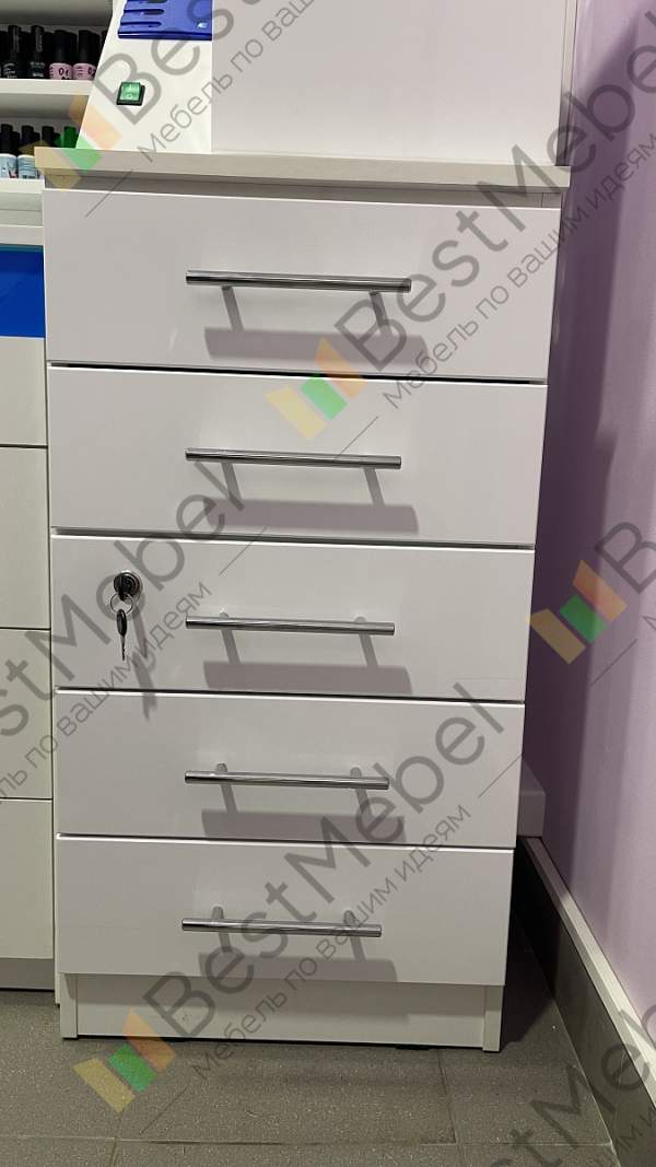Тумба Маникюрная с замком и ящиками BMS станет отличным выбором для меблировки салонов красоты. Модель компактна и выполнена в универсальном белом цвете, который гармонично впишется в большинство современных интерьеров. Для размещения рабочих материалов тумба оборудована пятью выдвижными ящиками с практичными ручками-рейлингами, один из которых закрывается на ключ и подходит для хранения личных вещей. Купить тумбу Маникюрная с замком и ящиками BMS приглашаем в наш интернет-магазин.