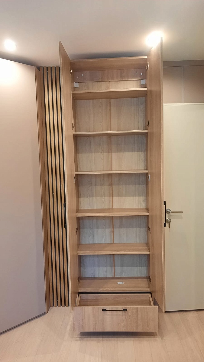 Заказывали шкаф небольшой глубины, для хранения обуви. Изготовили, доставили быстро. По качеству без нареканий. Очень удобный сайт, есть пожелание - расширить количество образцов материалов в шоу-румах (Румянцево), в остальном - всё супер! Спасибо!