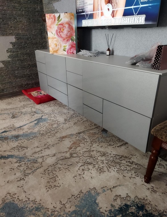 Тумба классная! Переживала, что маленькая (1300х400х330), но оказалась вместительная! Смотрится стильно, аккуратно! Пыль не видна, что немало важно)) Рекомендую!