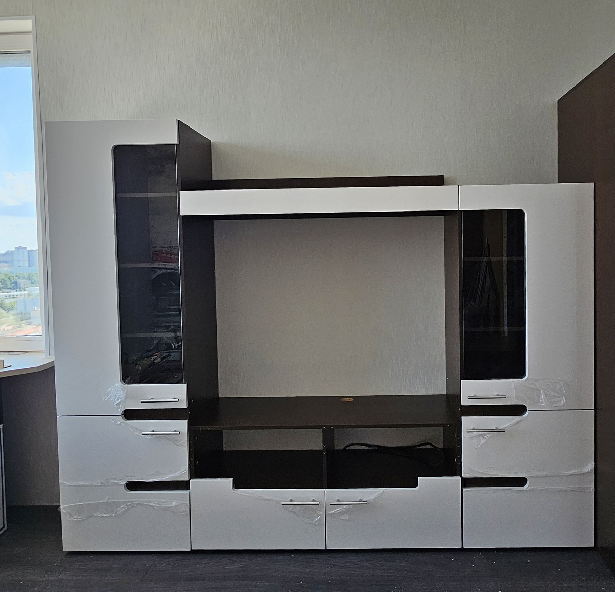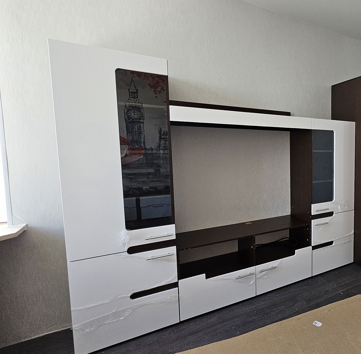 Спасибо большое за стенку. Муж собирал сам, всё понятно, никаких сложностей... По размерам все супер , так как просила. Упакованно все детали, не одной царипины, компектующие все на месте...Смотрится классно! Ещё раз спасибо большое вам и вашим ребятам доставки..!!
