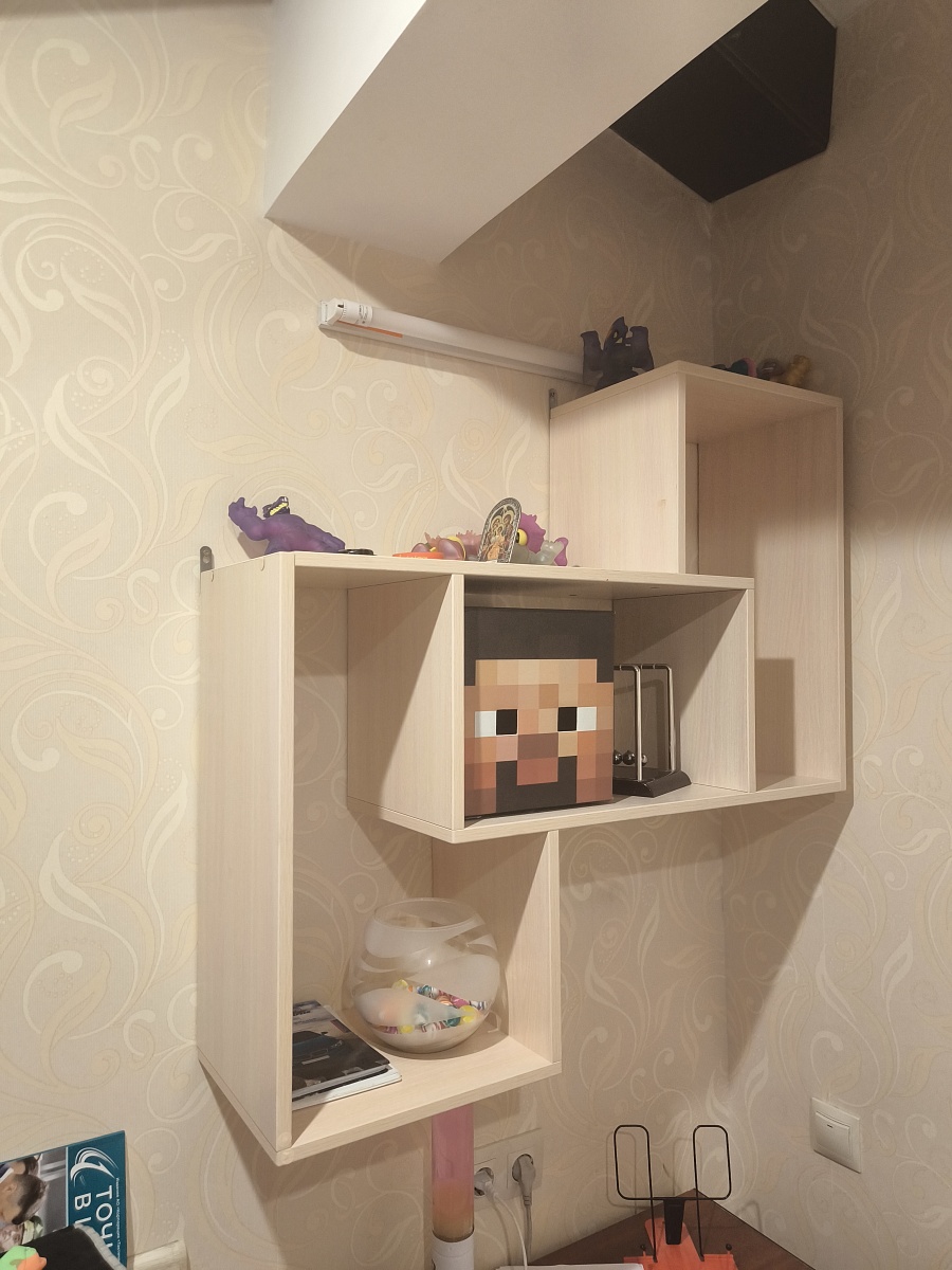 Хорошая полка. Выбирал сын. Хотелось необычную, удобную. Качество достойное. В сборке ничего сложного. Сделали по индивидуальным размерам. Цены хорошие