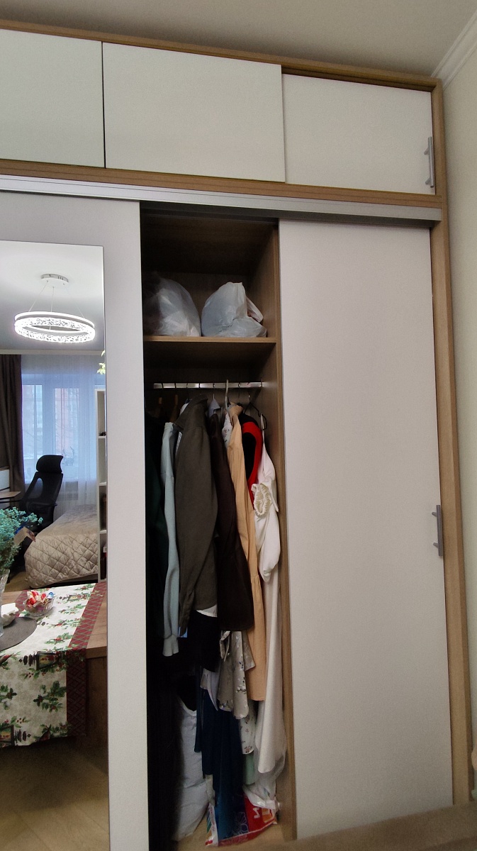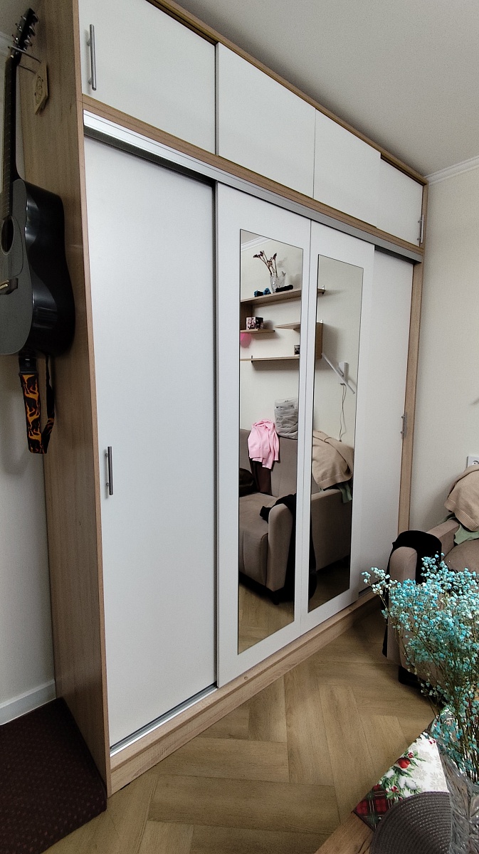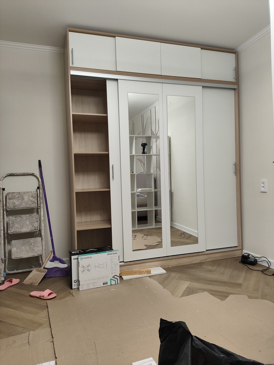Заказ 00000258491, изделие ЭСКИЗ №00000258491 Шкафы-купе УЮТ 5 BMS (2000х2500х550) (Белье - Платье - Белье (4))Наш второй заказ в этом магазине. Заказывали через менеджера в шоу-руме, она учла все пожелания по размерам, цвету, фурнитуре и прочему. Можно было посмотреть и потрогать представленные образцы в офисе.Сам шкаф удобный в использовании, практичный, много места для хранения, двери двигаются плавно. Были некие косяки по системе направляющих, но мы не придали особое значение, чтобы сэкономить время, купили сами деталь, которая была сломана В целом довольны
