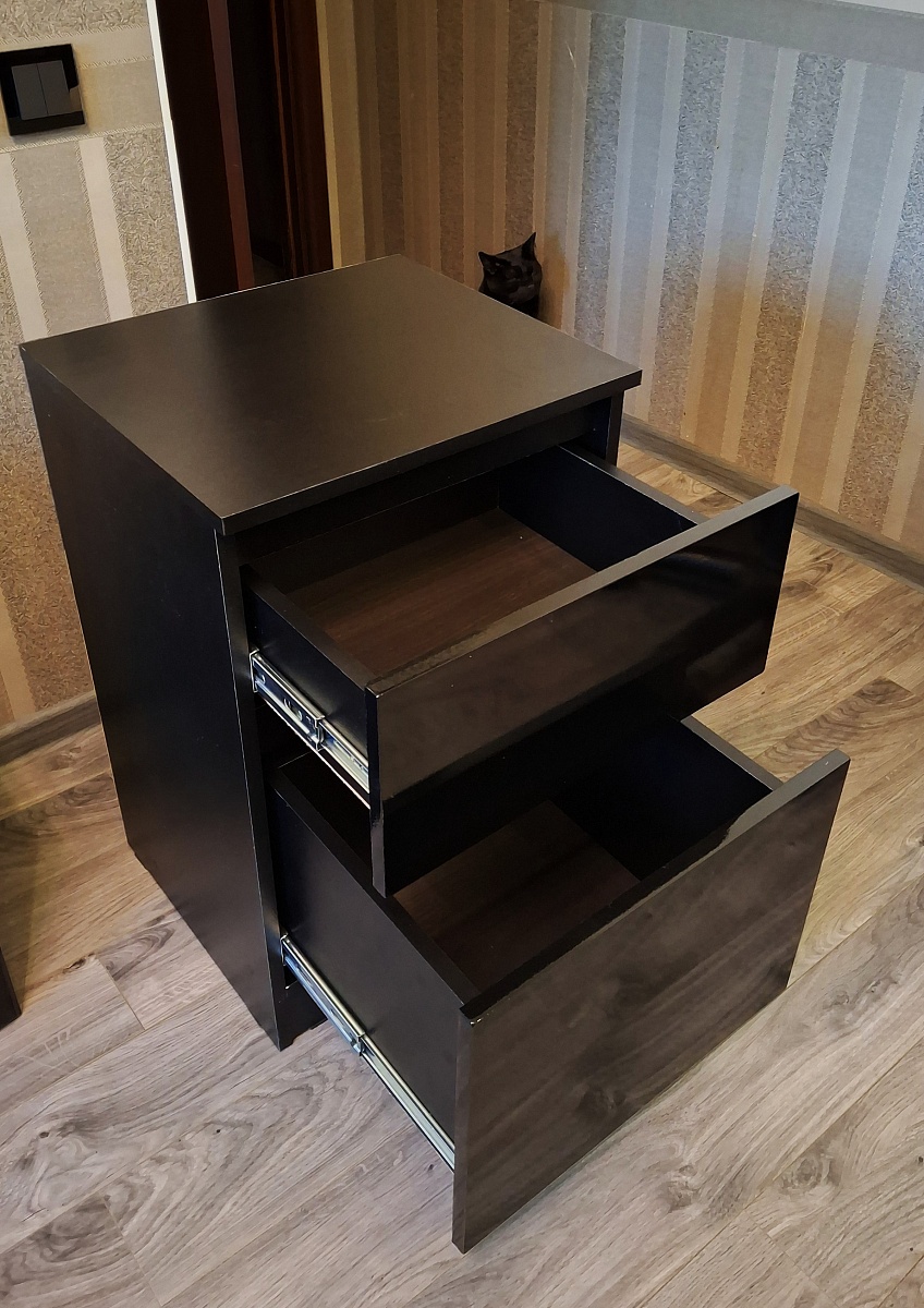 Выбрала шкаф, заказала, оплатила в личном кабинете. Мне перезвонил менеджер, и мы обговорили детали. В ходе диалога, мне понадобилось внести несколько изменений по поводу наполнения изделия, потом я ещё раз звонила и просила кое-что изменить. Разница в цене получилась в мою пользу, вернули не сразу, похоже, что про меня забыли. Все сотрудники очень терпеливые и вежливые. Ждала изделие ровно столько, сколько мне сказали при первом общении. Когда шкаф был готов, меня оповестили, что передают в доставку. Доставка была Деловыми линиями, а это лотерея. Приехал равнодушный водитель, сказал, что у нас без подъёма на этаж и выгрузил детали из машины. Когда муж забирал последнюю коробку, водитель напомнил, что подъём оплачивается на месте. Через несколько дней со мной связался сборщик, и мы договорились на удобное время. Пришёл весёлый мужчина, который собирал шкаф и подпевал своему телефону, на котором он включил музыку на время работы. К работе подошёл творчески, максимально удобно установил шкаф так, что он стоит надёжно. Выглядит вполне крепким. Единственное, что я не разобралась, как за покрытием снаружи ухаживать. Обычной тряпкой с водой не удалось оттереть брызги, после того, как животные отряхиваются.Хотелось бы понимания, что за покрытие используется по периметру дверей, потому что мне нужно было немножко другое. Плюс скудный выбор ручек для данной модели, из-за чего у меня в комнате этот шкаф не гармонирует с другой мебелью. В целом я довольна. При необходимости новой мебели, буду обращаться ещё.