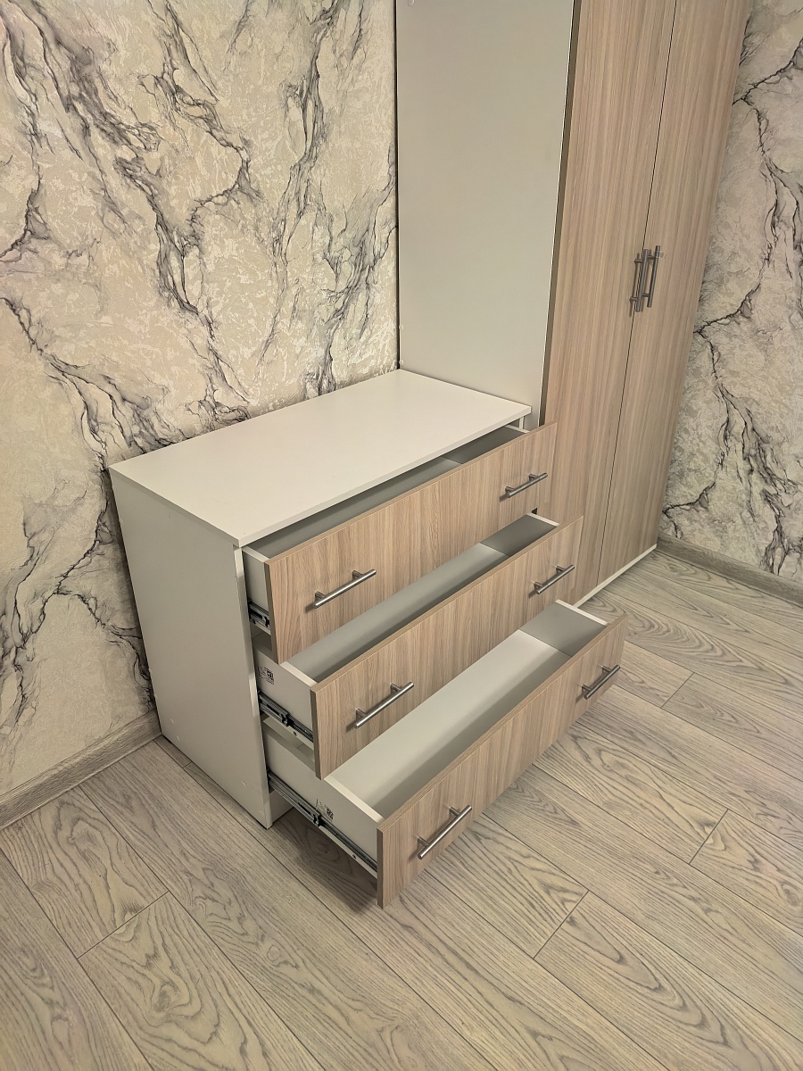 Не первый раз заказываем мебель в BMS, все прошло отлично, комод замечательный получился🤗 Удалось выбрать подходящее цветовое решение, фасады софт тач, не остаются следы от пальцев, покрытие крепкое. Комплектация полная, все в лучшем виде. Доставили вовремя, оперативно собрали. Мы довольны, спасибо! Респект производителю и всей команде
