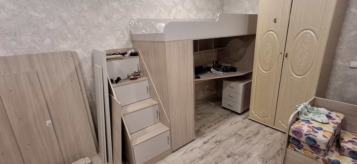 Всё превосходно:- Вежливые сотрудники по телефону и водитель, приятное отношение со всеми,- Товар доставлен отлично упакованный, все элементы без сколов и дефектов,- На всех соответствующих элементах есть метки, отверстия и т.д. для дальнейшей сборки,- Сборка без проблем, все элементы в сборном виде ровные, без зазоров.Советую данную антресоль и BestMebel, уверен вся продукция качественная!
