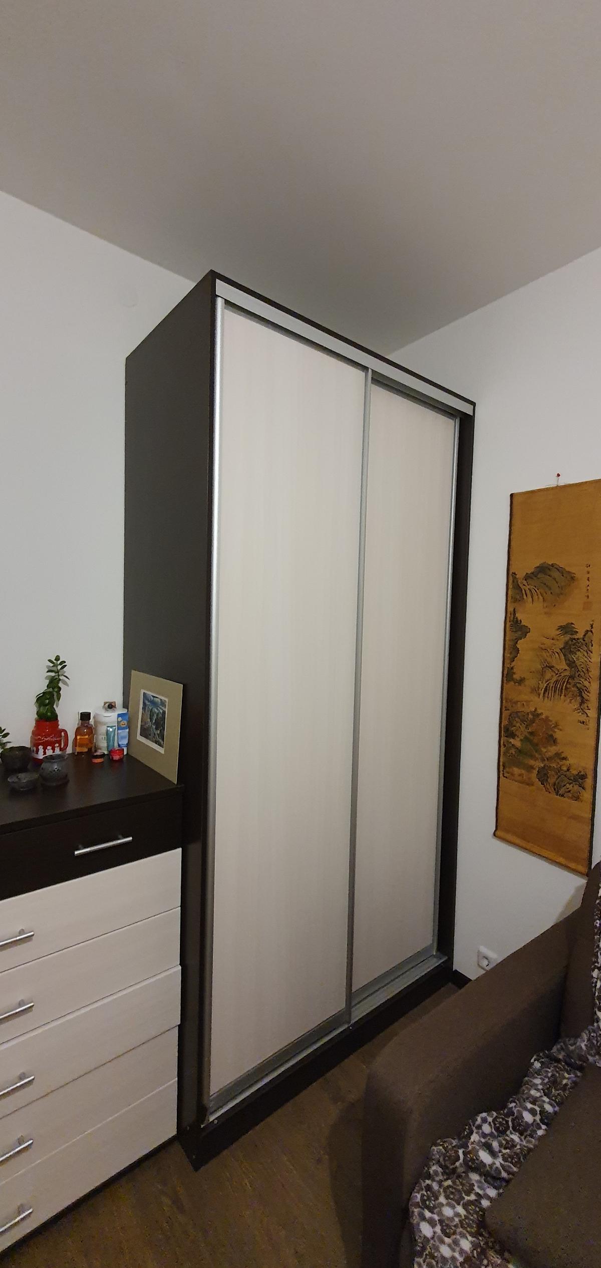 Замечательный шкаф-купе! Сначала хотели купить в Икее, но нам нужен был шкаф 120 см длиной, в Икее таких не было. Потому стали искать модель, чтобы делать с размерами под заказ. Шкаф "Трис" идеально вписался в желаемые габариты (с нахождением его среди миллиарда других нас поздравила даже консультант), и с выбранным дизайном (корпус венге и белый сандал, без зеркала) – замечательно вписался в дзен-буддийский дизайн комнаты! (см.фото)Впервые брали мебель на заказ, очень сомневались, но все вышло выше всяких похвал, честно, мы не ожидали. Шкаф красив, вместителен, а количество и высоту полочек мы выбрали сами, взяв за основу дизайн того самого шкафа из "Икеи". Спасибо большое, шкаф очень порадовал!!!