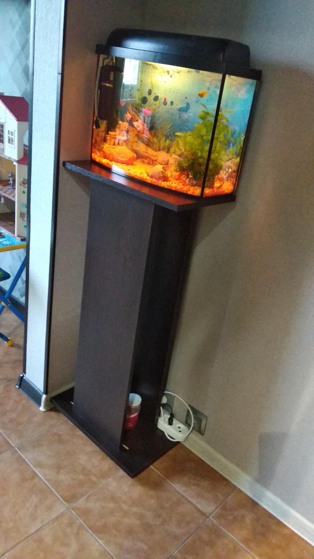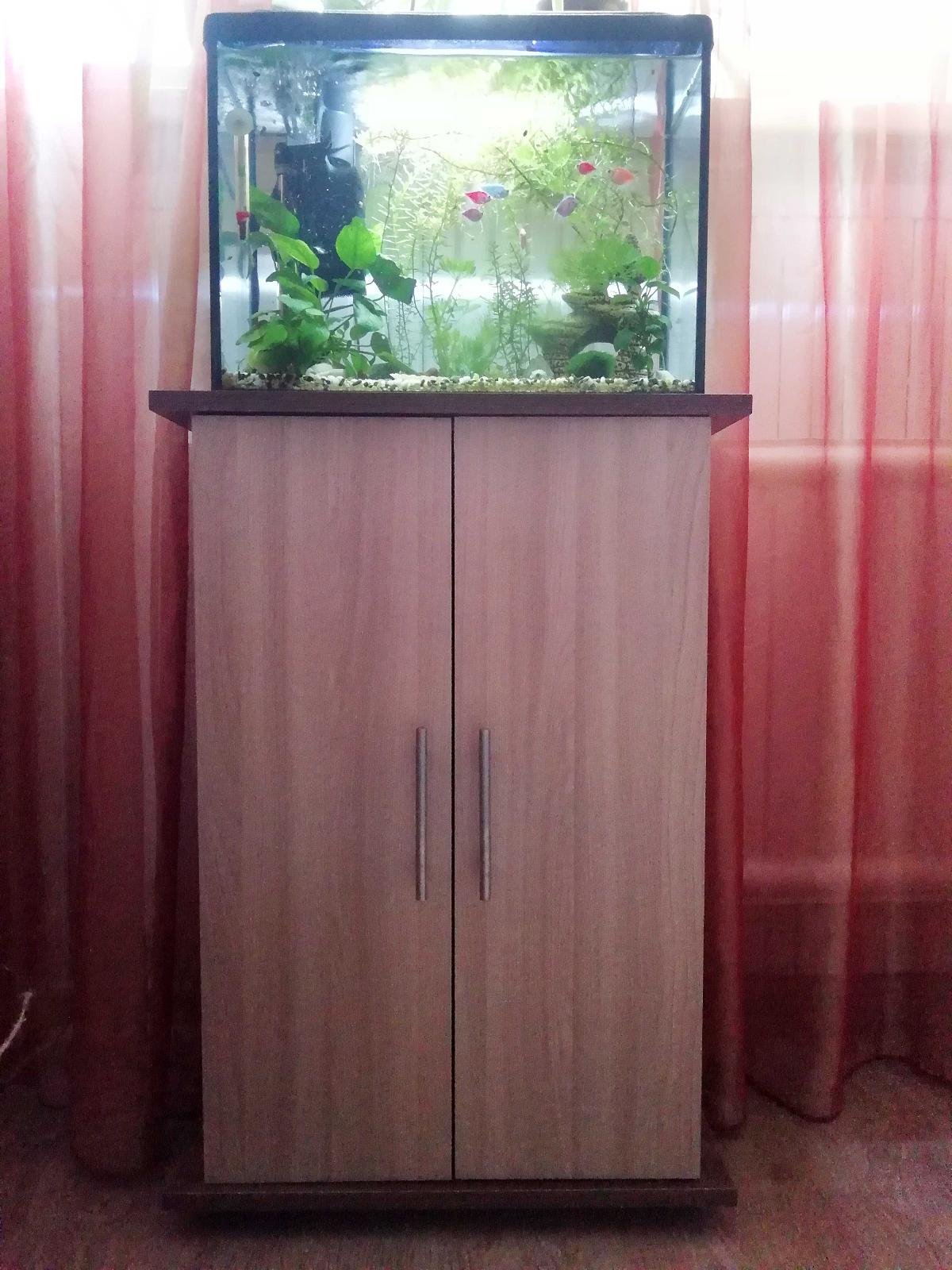 Заказывали Тумбу под аквариум Классик 50 в данном магазине. Доставили очень быстро, даже раньше оговоренного срока. Собирали мы ее сами. Тумба отличная, хорошо вписалась в интерьер комнаты, выглядит аккуратно, и цена очень порадовала. Используем уже более 3-х месяцев - ничего не отвалилось, не размокла, хотя вода на нее попадает постоянно при смене воды в Аквариуме. Внутри есть две полки, на которых поместились все аквариумные принадлежности. Покупкой очень довольны, рекомендую к покупке.