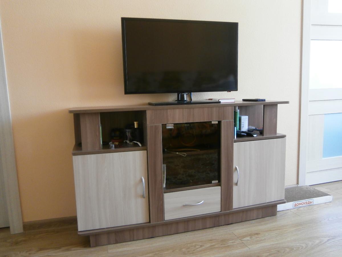 Заказ 00000564751, изделие Тумба под телевизор Виста-11 BMS (1300х750х300)Было необходимо подобрать тумбу под TV по ранее выбранной цветовой гамме мебели и размерам. Оформили заказ в BestMebelShop: тумба под телевизор Виста-11 BMS , габариты 1300х750х300 мм. Это наша вторая покупка в этом интернет-магазине за полгода. Изготовили за 3 дня, доставили в согласованное время — в 23.30. До оплаты курьеру наличными была возможность проверить качество и комплектацию изделия — все ОК. Схема сборки (простенькая) имеется, проблем с самостоятельной сборкой не было. При оформлении заказа выбрали дополнительные опции: ПХВ кромка 2*19 мм, петли с доводчиком, ручки Боярд сатин (металл).Стоимость заказа 9550 руб., с учетом имеющихся у нас бонусов за первую покупку всего к оплате с доставкой вышло 8287 руб. Аналогичные изделия есть в магазинах под заказ, сроки изготовления от 14 до 45 дней, 50% предоплата. Покупкой довольны. На фото две стеклянные дверцы заменены на одно (стекло бронза 360х370 мм) — так удобнее.