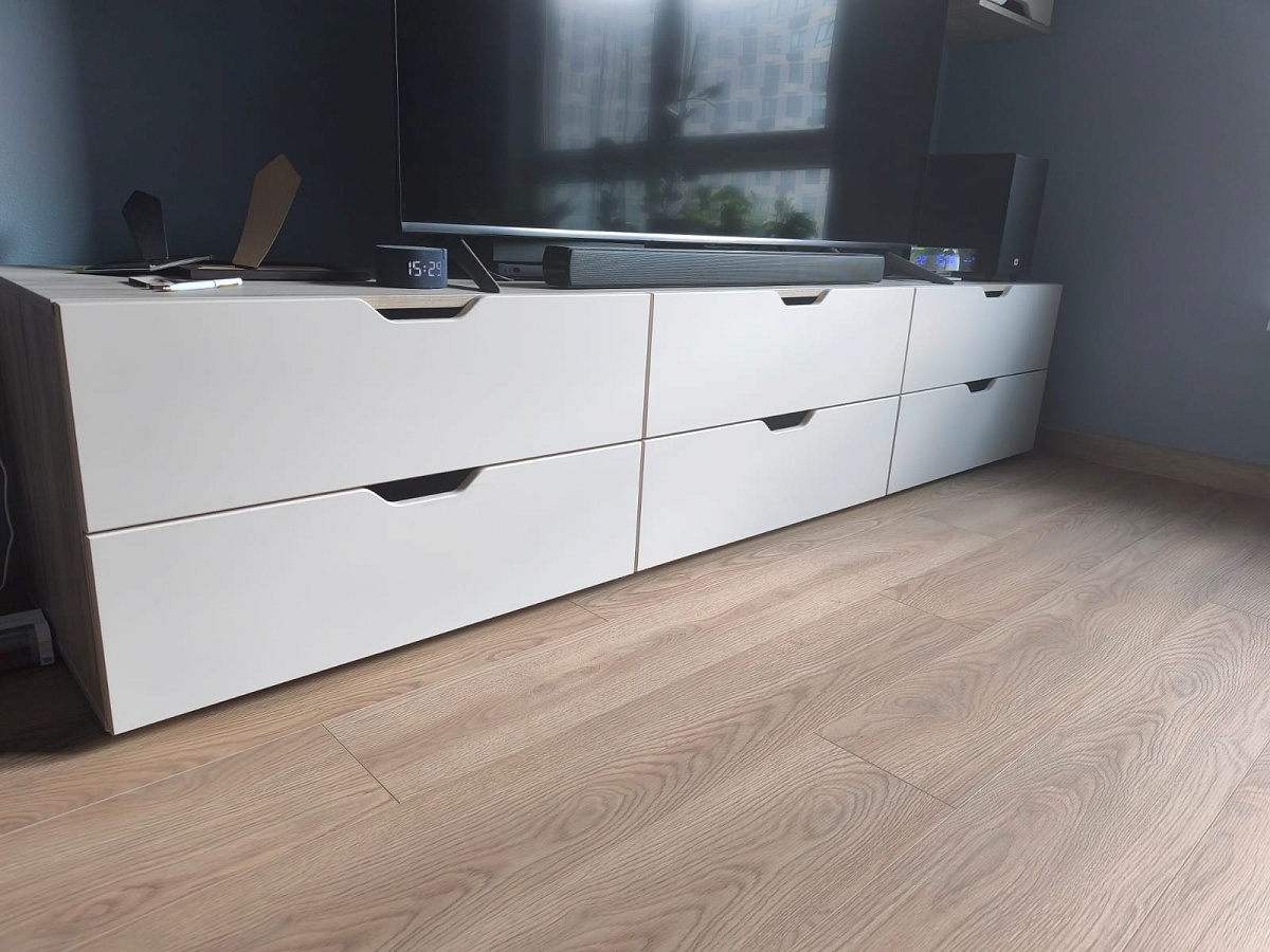 Тумбочка классная. Ничего лишнего. Однако при сборке выяснилось, что немного косо сделаны отверстия. Из-за этого сама конструкция получилось немного неэстетичная. Пришлось подколхозить чтобы было ровно. Надеюсь при следующей покупке подобного не будет